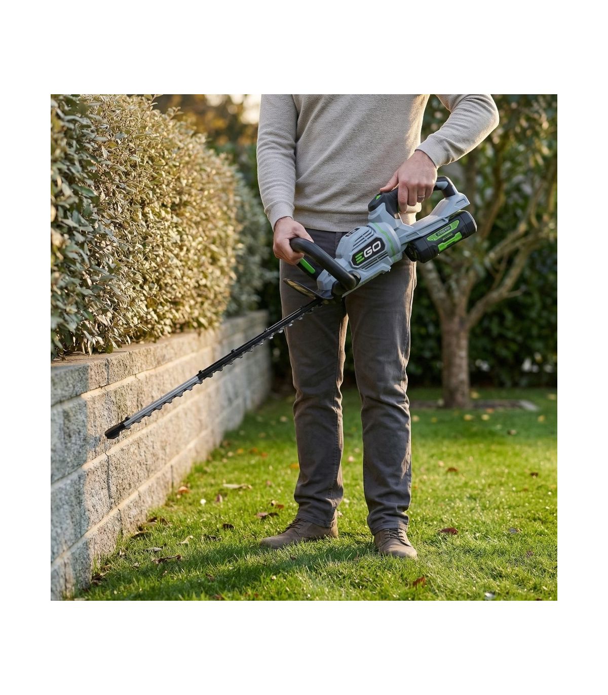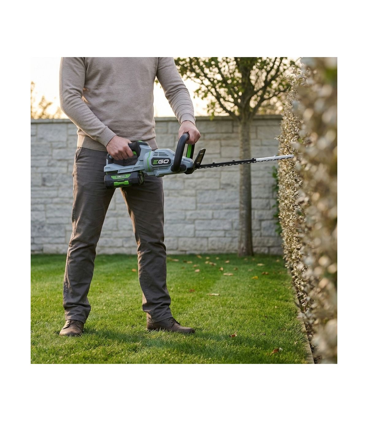 Le PACK-HT5110E comprend le taille-haies EGO POWER+ équipé d’un lamier de 51 cm, livré avec une batterie 56V 6Ah et un chargeur rapide. Il est conçu pour l’entretien régulier des haies, haies denses, broussailles et feuillages.