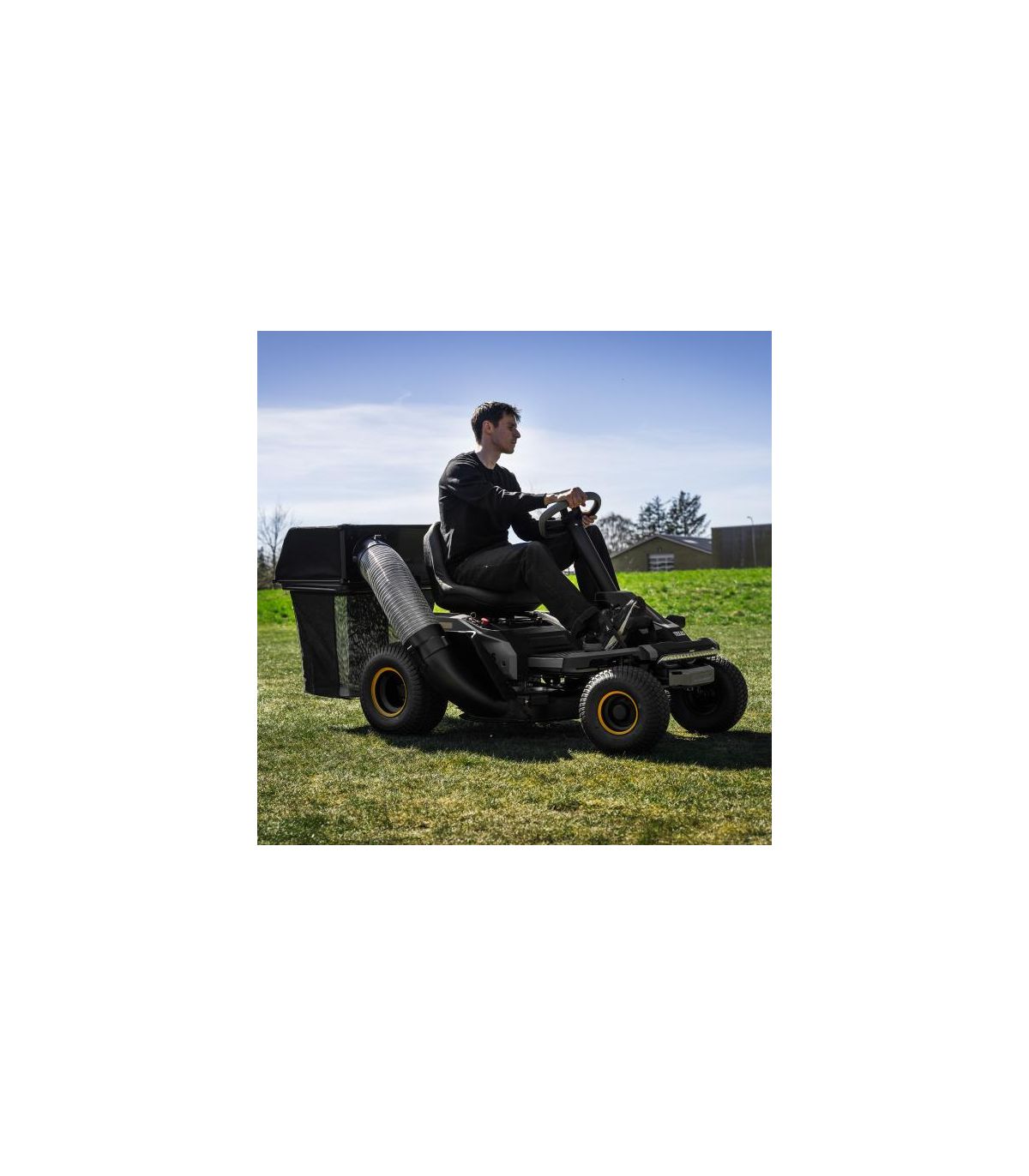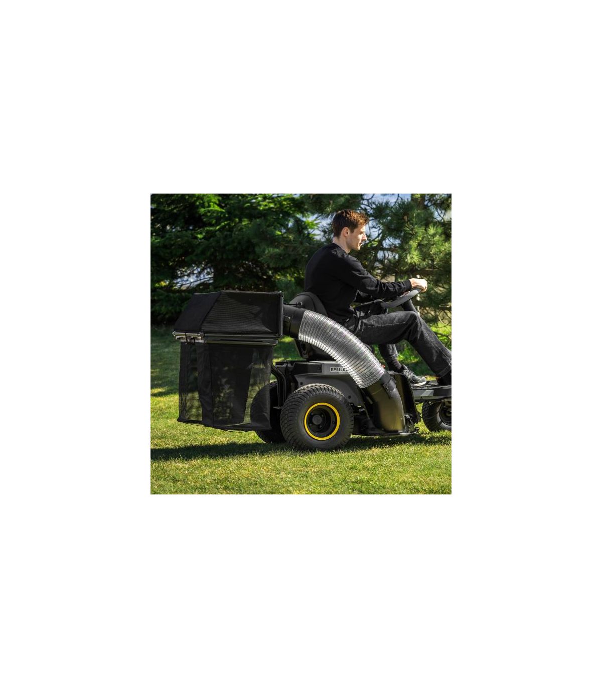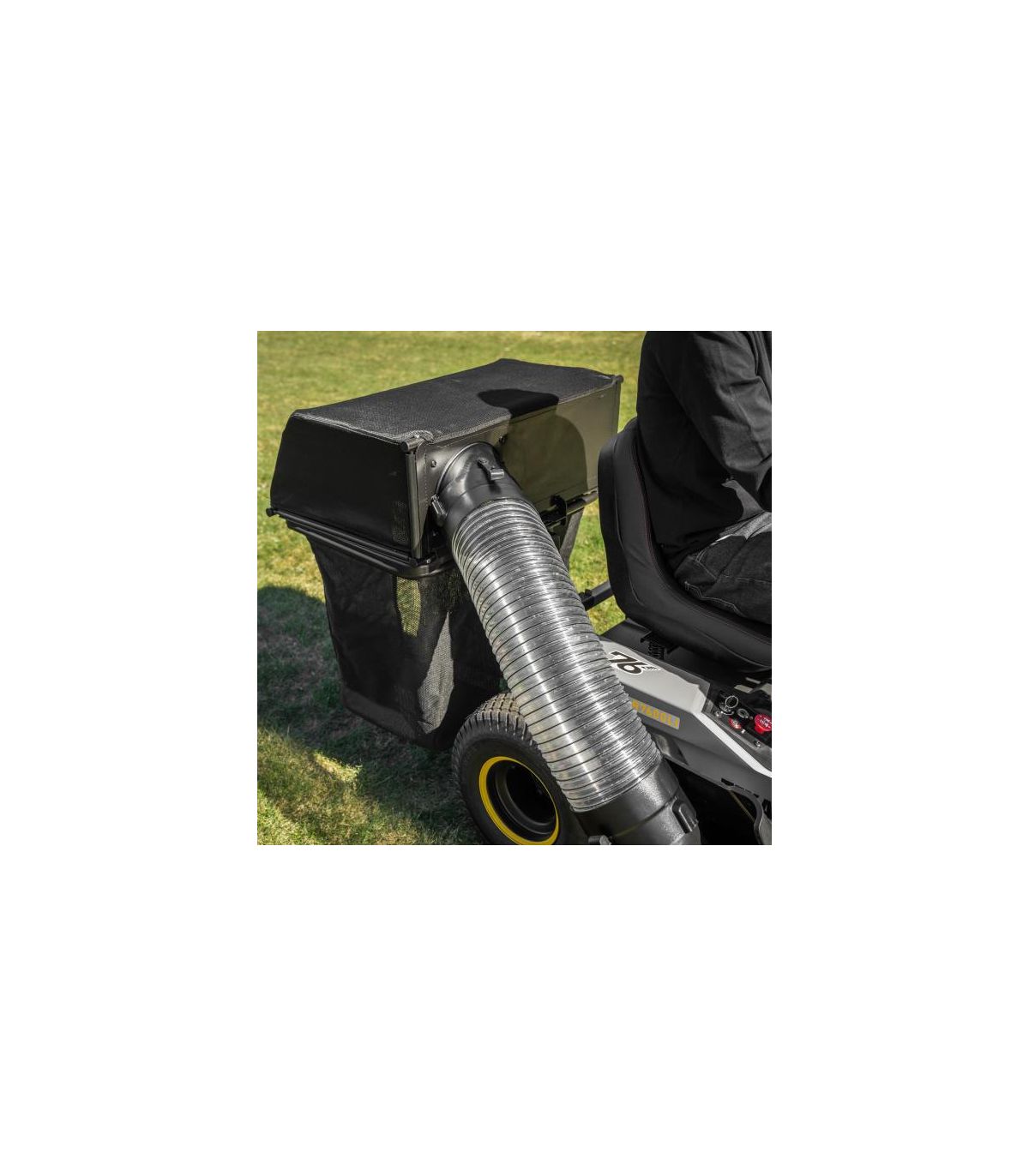 Le bac de ramassage présente une capacité de collecte de 230 litres, permettant de travailler longtemps sans interruption. Sa construction combine plastique rigide et textile résistant, assurant légèreté et durabilité. La couleur noire sobre s'intègre harmonieusement à l'esthétique du tracteur. Le produit est couvert par une garantie fabricant de 2 ans, témoignant de sa robustesse pour un usage régulier. Son design optimisé s'harmonise parfaitement avec la largeur de coupe de 76 cm du tracteur Epsilon R7600Li.