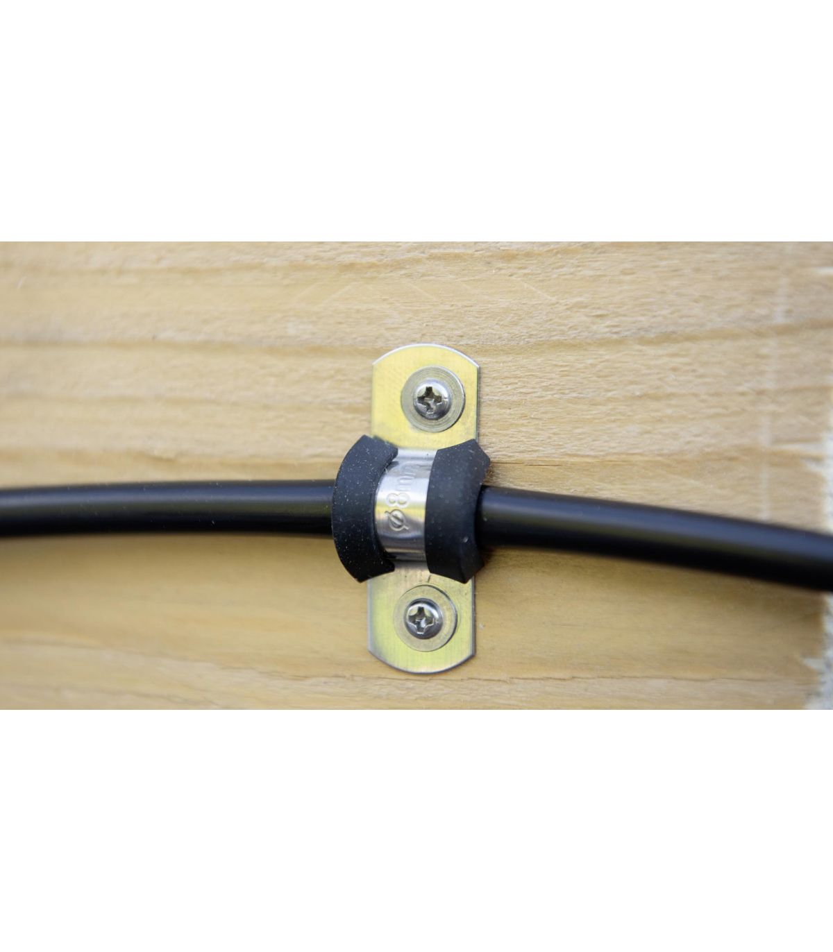 Matériau résistant aux UV et aux intempéries, assurant une longévité en extérieur. Forme en U adaptée aux tubes de 6 mm de diamètre. Fixation par vis ou adhésif selon le support choisi.
