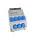 Le tableau est conçu pour distribuer le courant entre plusieurs consommateurs et prend en charge une tension de 230/400 V, ainsi qu'un courant de sortie nominal de 32 A. Il permet de connecter plusieurs appareils simultanément en toute sécurité.