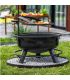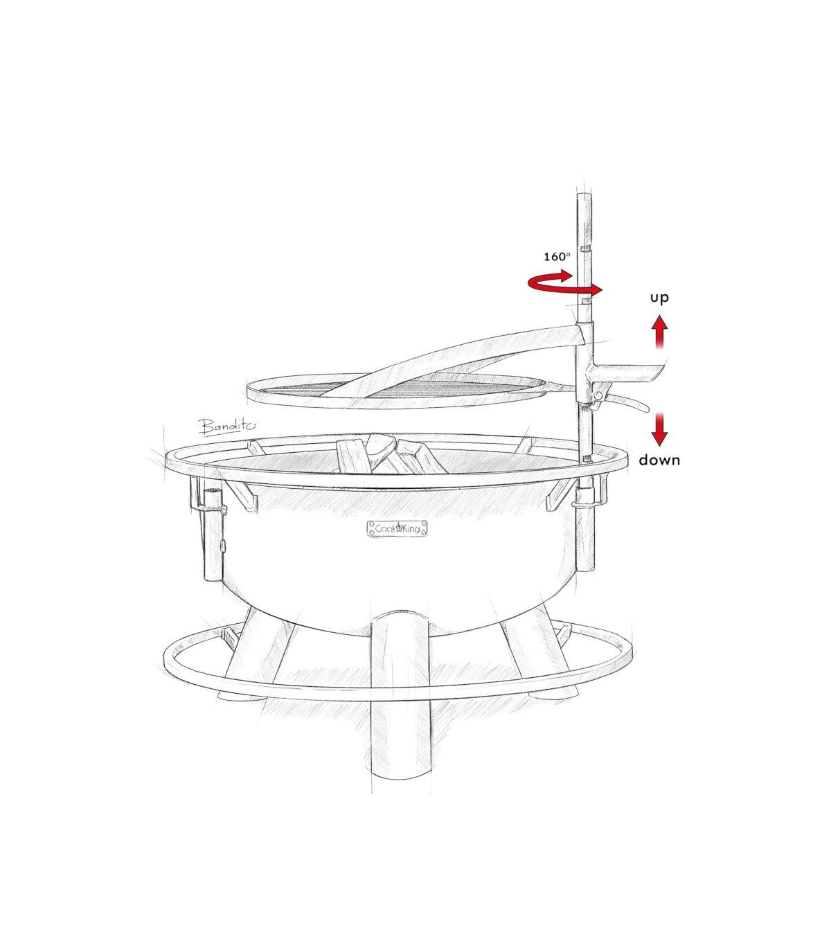Ce braséro est livré avec une grille en acier noir de 60 cm, réglable en hauteur et pivotante à 120°, qui permet :