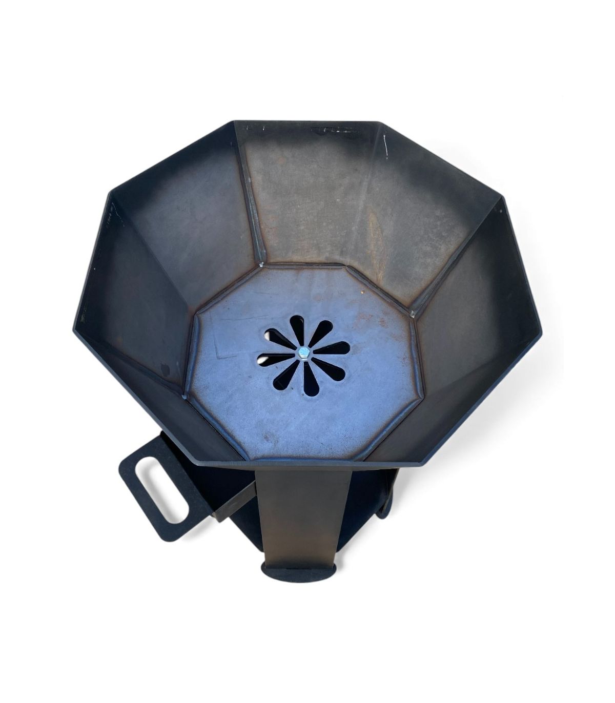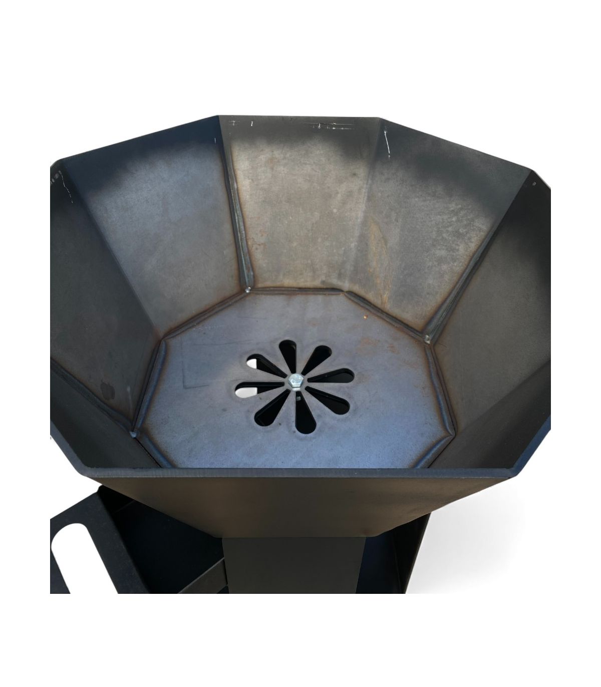 Le braséro AKNOR ROULAND est conçu en acier épais de 6 mm, offrant une excellente résistance à la chaleur et une durabilité supérieure. Sa forme octogonale et sa cuve de 56 cm de diamètre permettent d’obtenir un foyer large et stable, idéal pour une utilisation extérieure régulière.