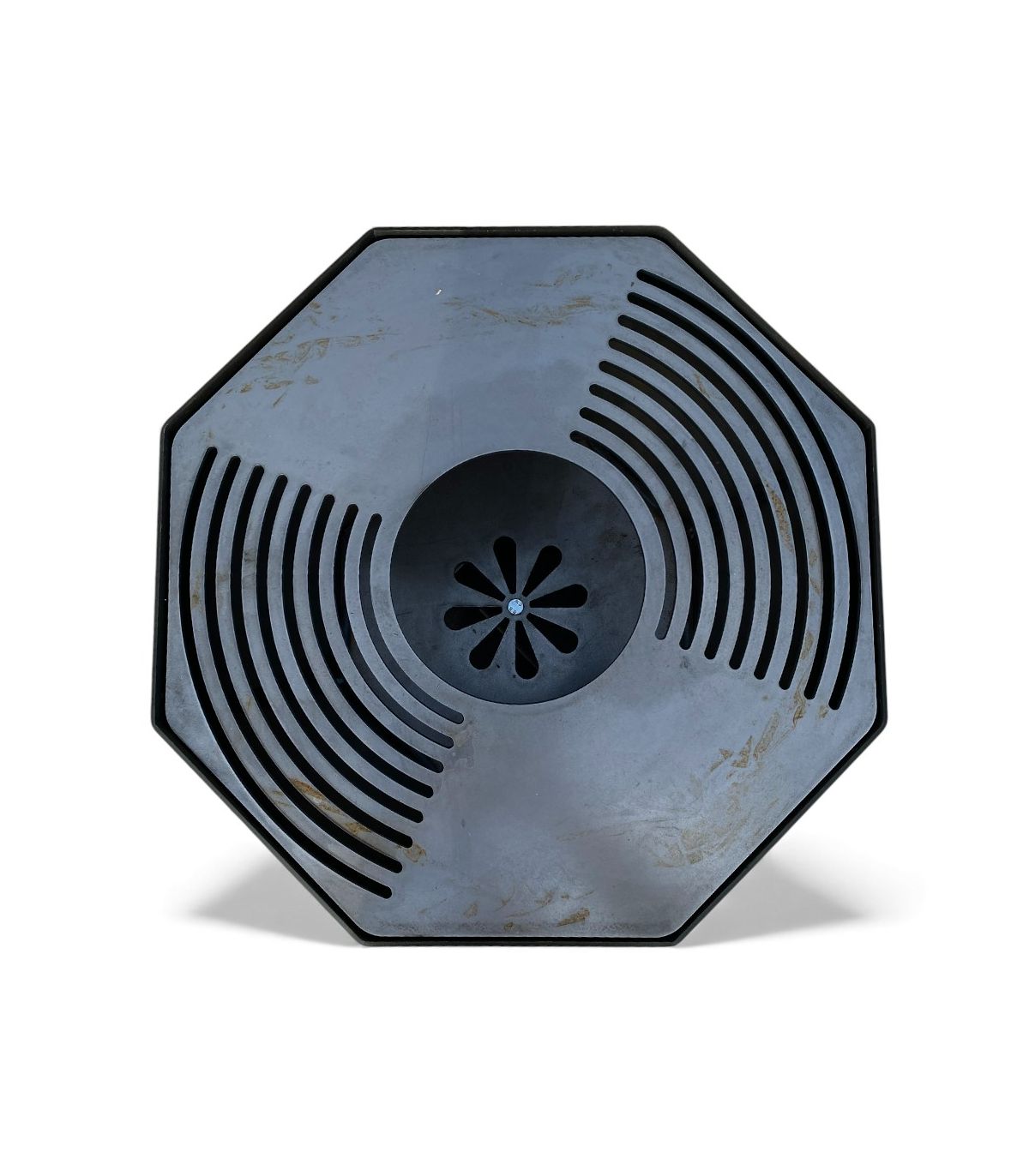 La plaque de cuisson est conçue en acier de 5 mm, assurant une diffusion régulière de la chaleur sur l’ensemble de la surface. Son diamètre de 56 cm et sa forme octogonale offrent une zone de grillade stable et pratique pour cuire viandes, poissons ou légumes directement au-dessus du foyer.