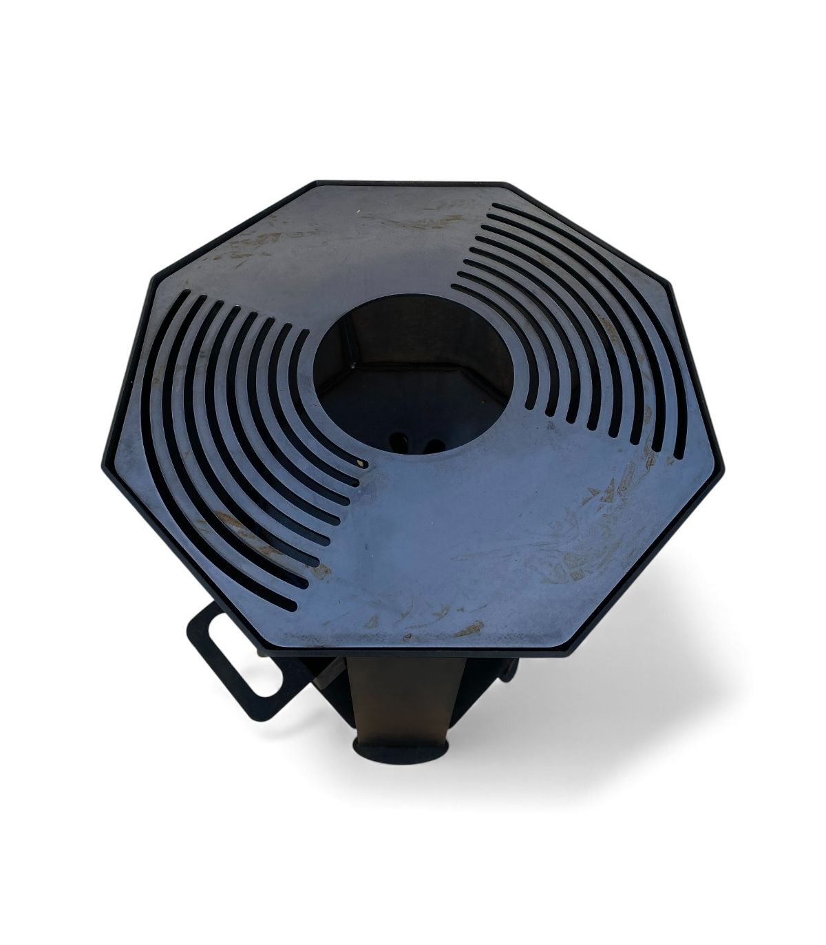 La structure octogonale facilite l’organisation des aliments et permet de profiter de zones plus ou moins chaudes selon l’emplacement sur la plaque. La surface ouverte permet une cuisson au feu de bois authentique, avec une température maîtrisée grâce à l’épaisseur de l’acier.