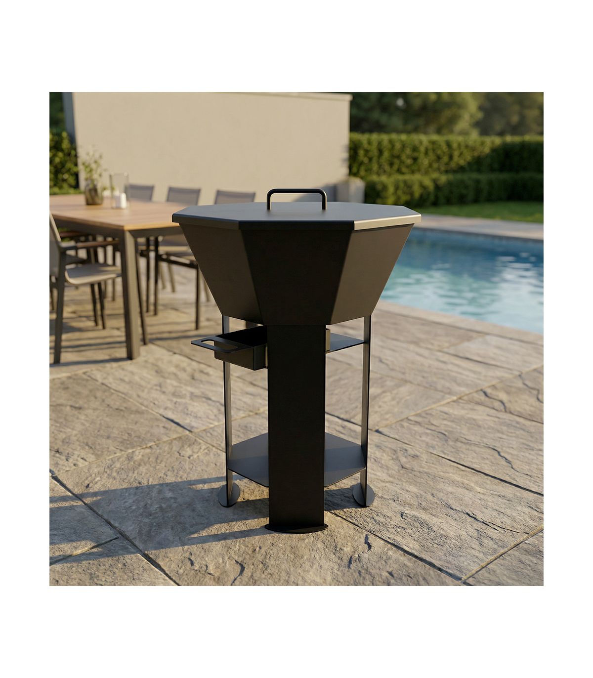 Le braséro AKNOR est conçu en acier épais de 5 mm, offrant une excellente résistance à la chaleur et une durabilité supérieure. Sa forme octogonale et sa cuve de 56 cm de diamètre permettent d’obtenir un foyer large et stable, idéal pour une utilisation extérieure régulière.