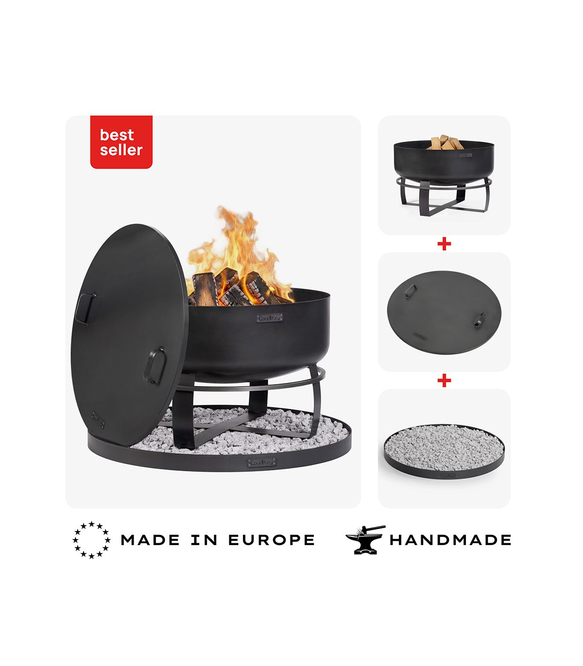 Le couvercle protège le foyer après utilisation, tandis que la base limite l’impact thermique sur le sol. Cette configuration améliore la sécurité et le confort d’utilisation.