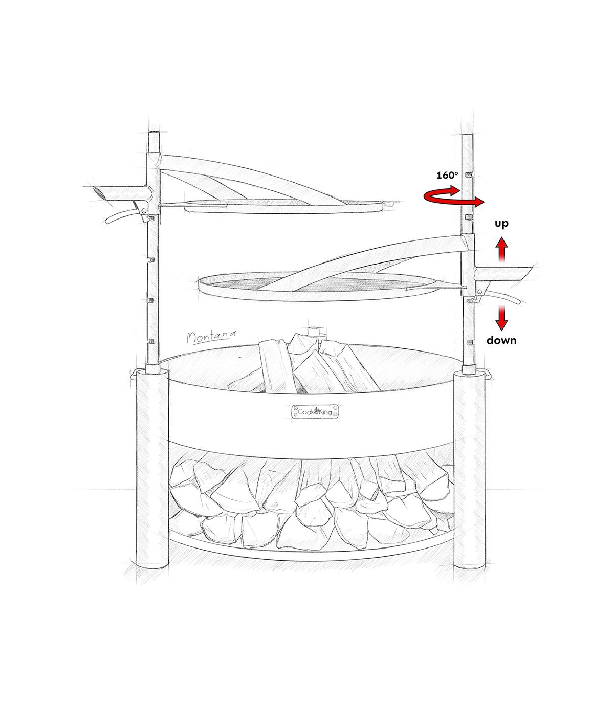 - Pack braséro CookKing MONTANA X 80 cm avec grille suspendue et poêle