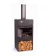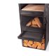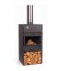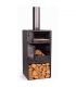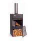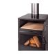 Il possède une étagère où l'on peut stocker une quantité considérable de bois. De plus, l'étagère inférieure protège le sol de la haute température lors de l'utilisation. À l'intérieur du poêle, trois niveaux sont installés pour une grille ou une poêle à griller, ce qui facilite considérablement le contrôle de la température des plats préparés. Le conduit d'évacuation des fumées, placé en hauteur, protège du passage de la fumée sur les personnes utilisant le produit.