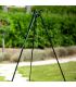 Le trépied d'une hauteur de 180 cm conçu pour un wok, une bouilloire ou un barbecue permet de préparer de nombreux plats en plain air. Combiné avec un mécanisme d'ouverture à l'aide d'une manivelle le trépied crée un ensemble barbecue parfait. Le trépied est revêtu de poudre, ce qui crée une protection résistante aux intempéries, rayons UV et la pluie. La manivelle pratique avec la chaine attachée permet le réglage de l'hauteur de votre équipement de cuisine. Le trépied stable peut être placé sur tout type de surface. Grâce à son moulinet, le trépied permet de lever le wok, bouilloire ou grille de cuisson ou de les baisser selon la cuisson. Le moulinet est composé d'un crochet extra durable afin d'empêcher de glisser la chaine, ce qui assure une cuisson sécure. Pour parfaire cet équipement en quelques gestes, le trépied est démonté et remonté, ce qui facilite le stockage et le transport. La conception solide assure le confort ainsi que la sécurité d'utilisation. Des décorations avec des éléments forgés soulignent son excellente finition.