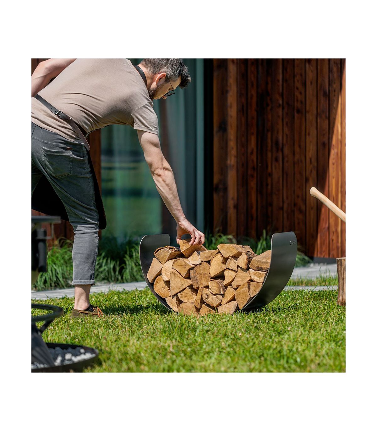 - Rangement à bois en forme de demi cercle équilibre de manière équitable le poids des bûches.
