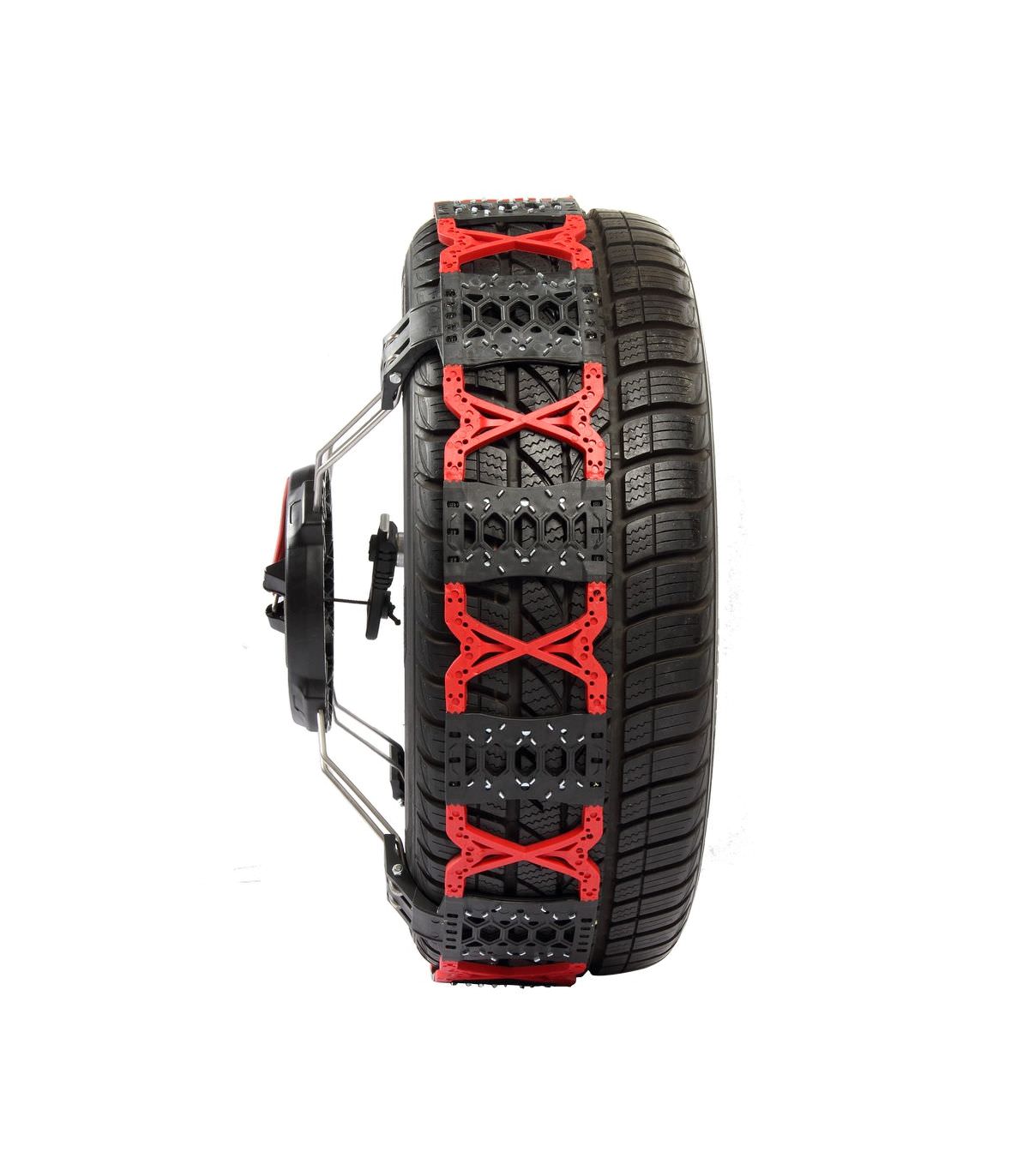 - Paire de chaînes neige à montage frontal à centrage et tension automatique, compatible avec tous les véhicules déclarés non chaînables.
