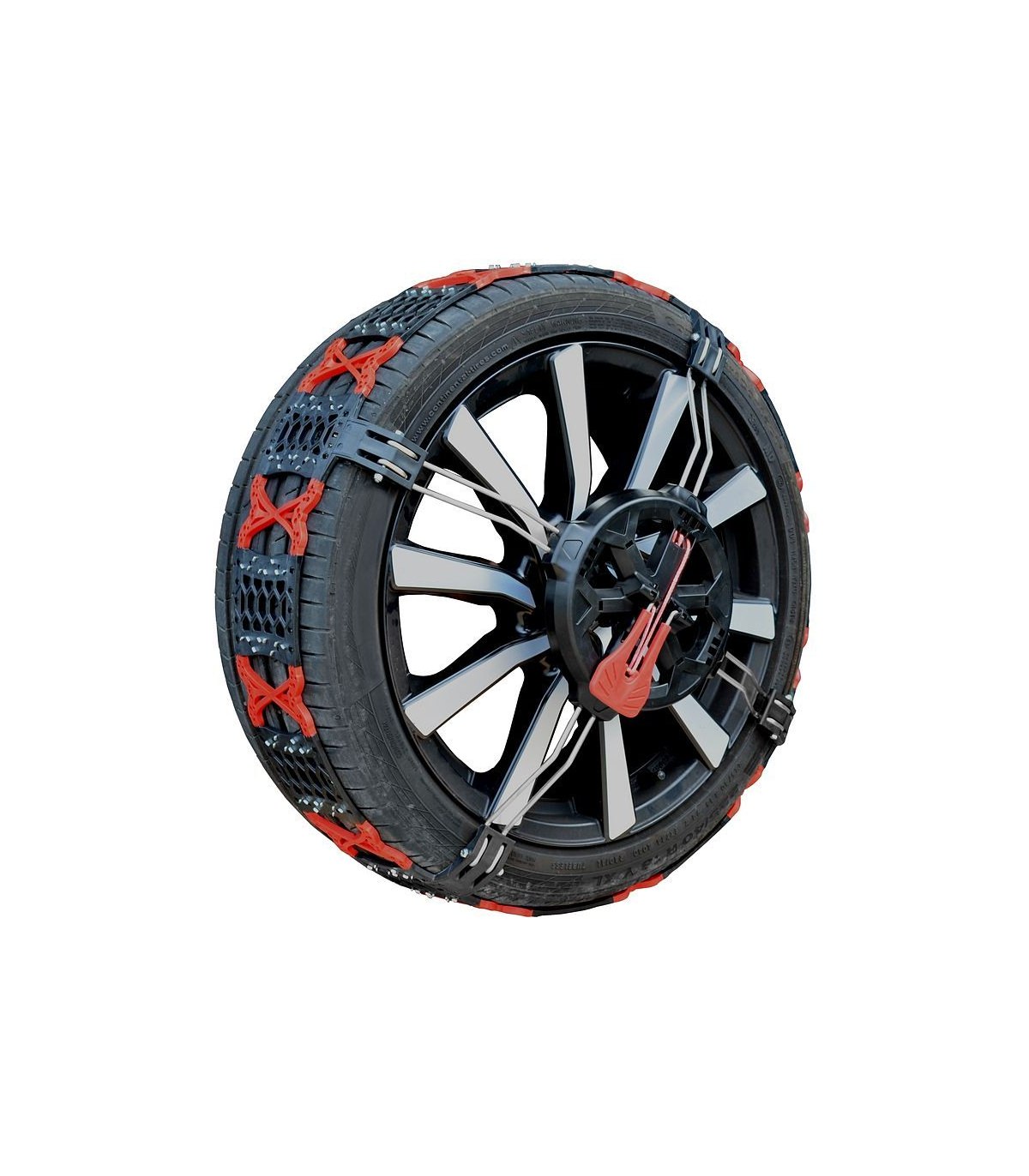 - Paire de chaînes neige à montage frontal à centrage et tension automatique, compatible avec tous les véhicules déclarés non chaînables.