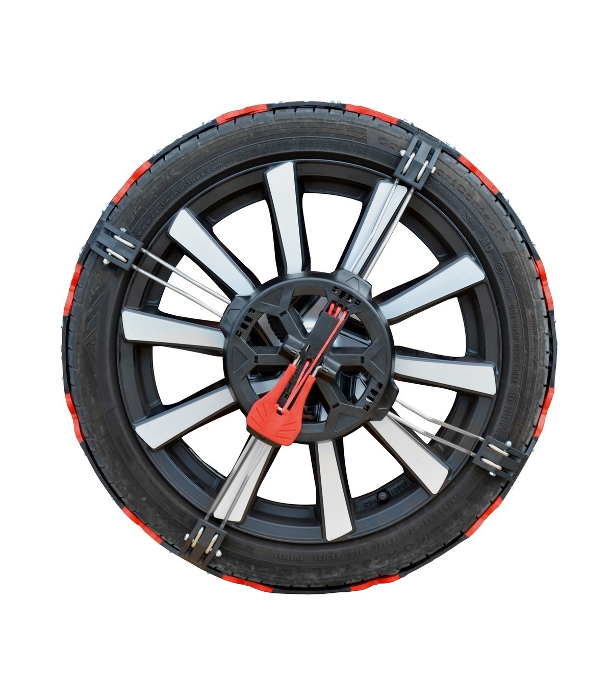 La chaîne neige frontale Polaire Grip possède aussi un système de fixation qui se prend sur tous les diamètres d'écrou de roue : 1 seule douille quel que soit votre voiture, du diamètre d'écrou 14 ou 24 !