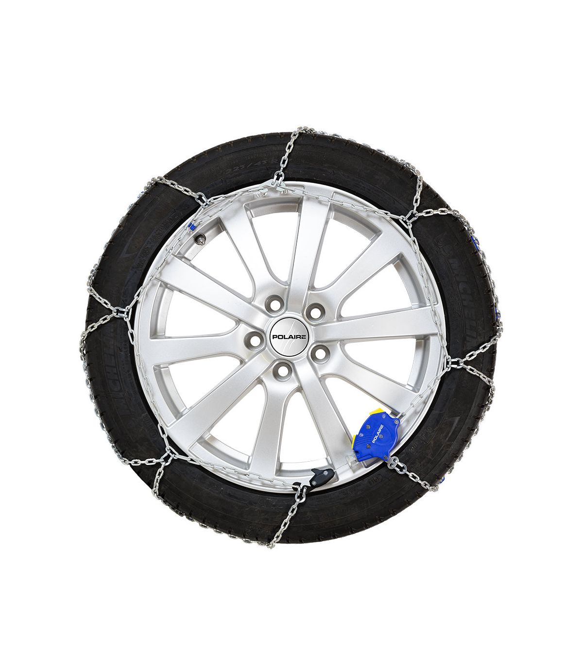 • Chaîne à neige pour roues de dimensions 225/40R19 polaire premium E9 9 mm à tension automatique pour un montage sans re-tension après démarrage.
