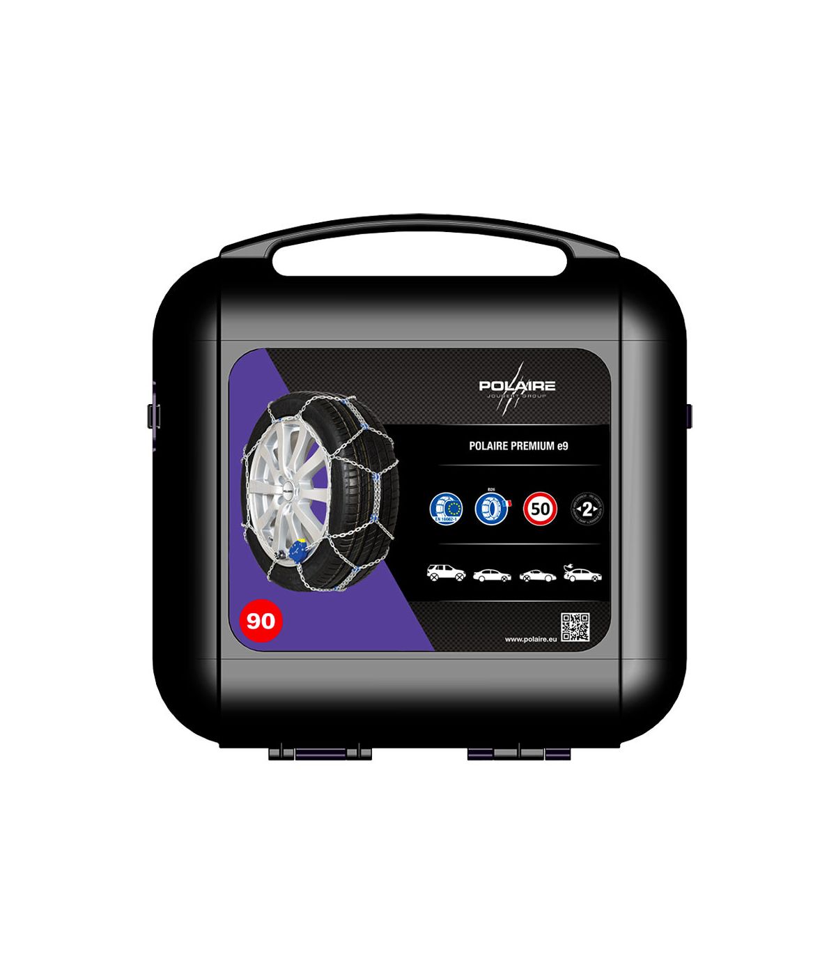 • Chaîne à neige pour roues de dimensions 275/40R17 polaire premium E9 9 mm à tension automatique pour un montage sans re-tension après démarrage.