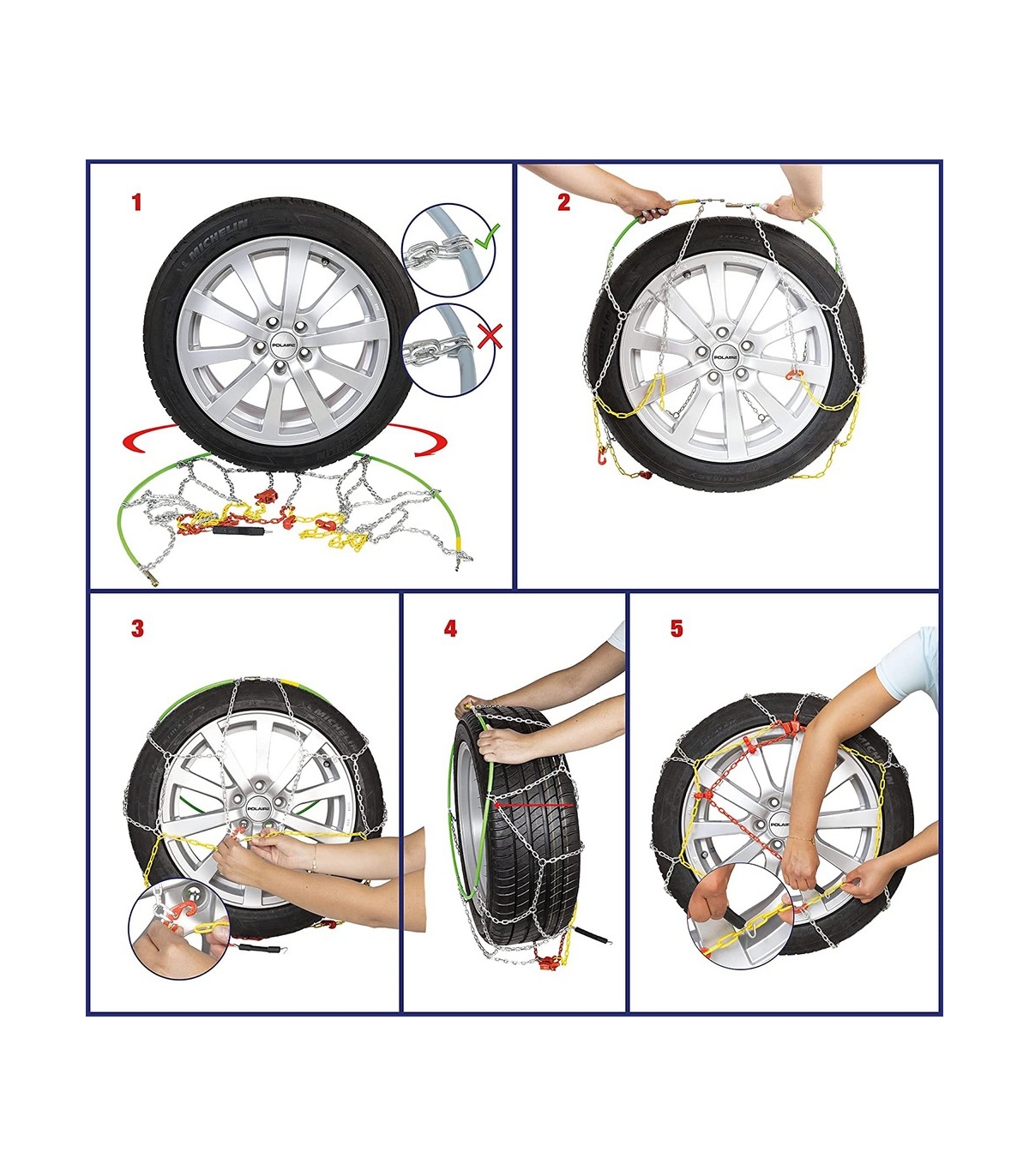 • Chaînes auto neige compatible sur les pneus des véhicules de Tourisme déclarés chaînables par le constructeur automobiles.(sauf SUV - 4x4 - Utilitaires, nécessitant des maillons de 13 ou 16mm).
