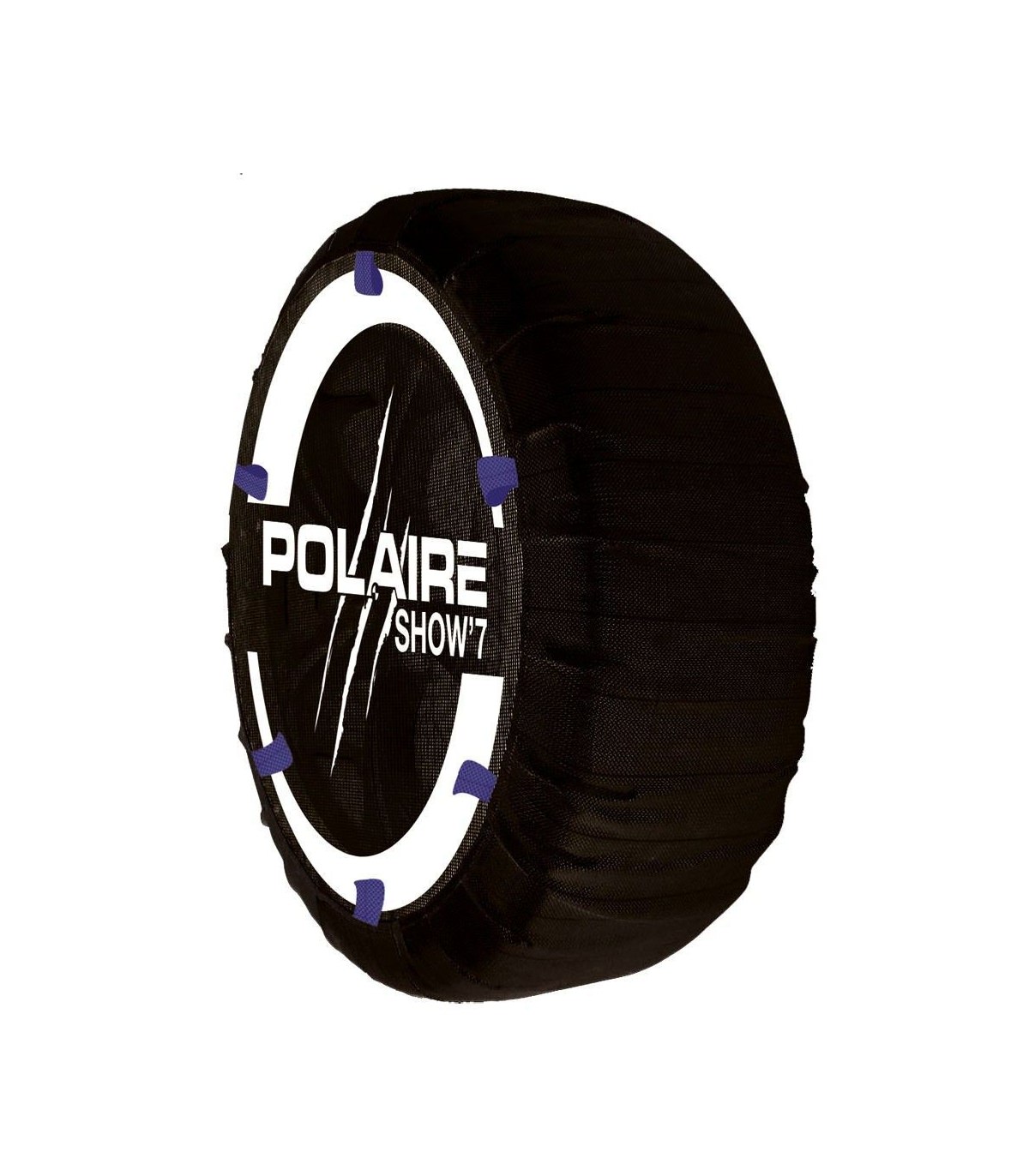 Chaussette neige ajustée au plus près du pneu dont la bande roulement en tissu haute résistance est d'une seule partie en continu pour exclure toute couture sur la surface de roulement et ainsi limiter l'échauffement du tissu.