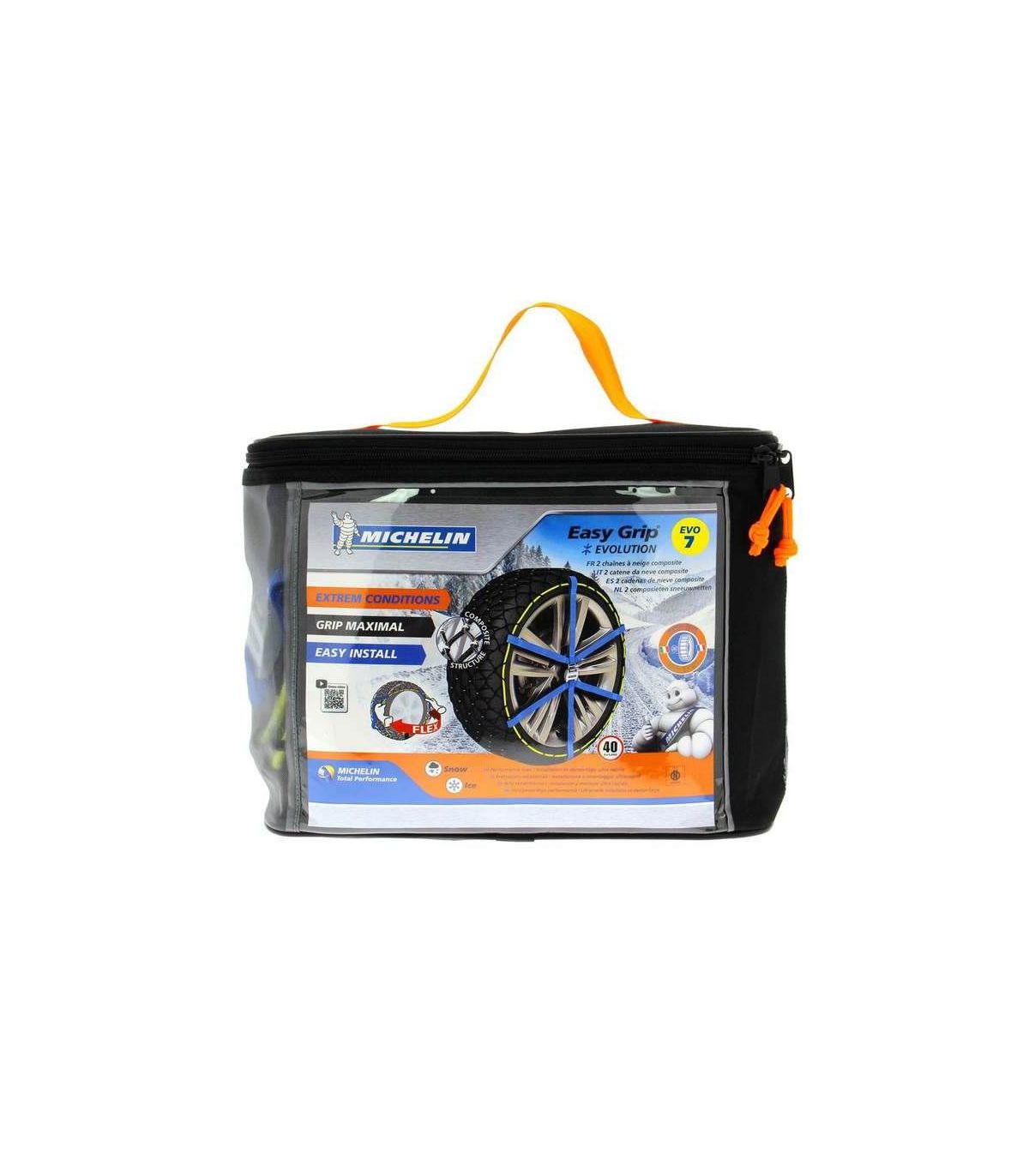 - Sacoche nylon sur-emballé comprenant 2 chaines neige textile Michelin Easygrip EVO.