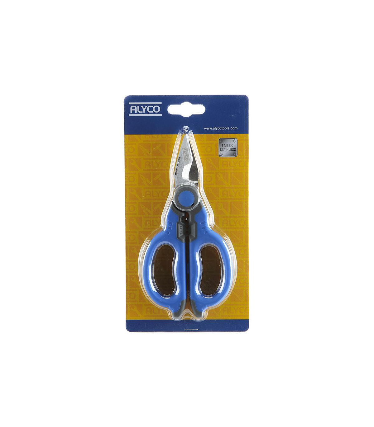 Le développement des ciseaux Alyco 108220 s'appuie sur une structure robuste où chaque composant est dimensionné pour la puissance. Les lames sont plus épaisses et bénéficient d'une géométrie optimisée incluant des encoches de coupe spécifiques. Ces encoches permettent de maintenir le câble au plus près de l'axe de pivot, maximisant ainsi l'effet de levier et facilitant le sectionnement de câbles multibrins épais. Le pivot central est renforcé pour éviter tout écartement des lames sous forte pression, garantissant une coupe nette et franche à chaque utilisation. Pour protéger l'outil contre l'usure prématurée et l'oxydation, Alyco applique un traitement de surface protecteur de haute qualité. Les manches sont dotés de poignées ergonomiques larges, conçues pour répartir l'effort sur toute la paume et assurer une prise en main antidérapante même en cas de travail intensif.