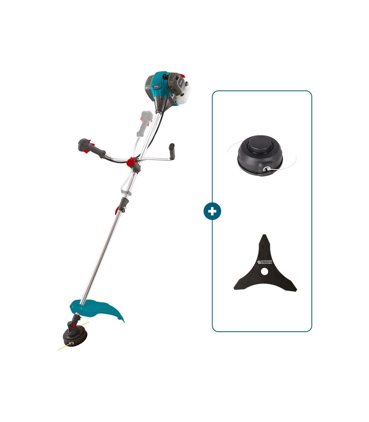 La débroussailleuse est livrée avec un pack d'accessoires complet pour s'adapter à chaque situation :