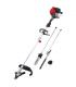 Elle est livrée avec 4 équipements, élagueuse de 25cm, taille haie de 40cm, lame 3 dents, tte de débroussailleuse automatique.