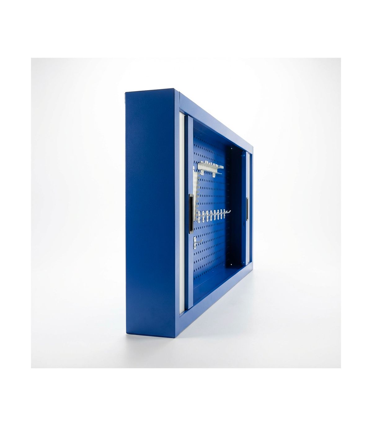 La supériorité technique de la référence 192804 repose sur sa capacité de stockage vertical inégalée. Le fond perforé s'étend sur toute la surface interne, permettant de suspendre méthodiquement des centaines d'outils, des clés dynamométriques les plus longues aux micro-tournevis de précision. L'utilisation de portes coulissantes sur une telle largeur est un tour de force d'ergonomie : elles libèrent l'espace de travail frontal, permettant à plusieurs techniciens d'accéder au contenu sans se gêner. La profondeur compacte de 195 mm assure que l'armoire reste un allié discret mais puissant au-dessus de votre plan de travail.