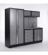 - Rangement de Grade Industriel : Inclut une armoire haute à 2 portes (2m), une unité de base à 9 tiroirs et des casiers suspendus.