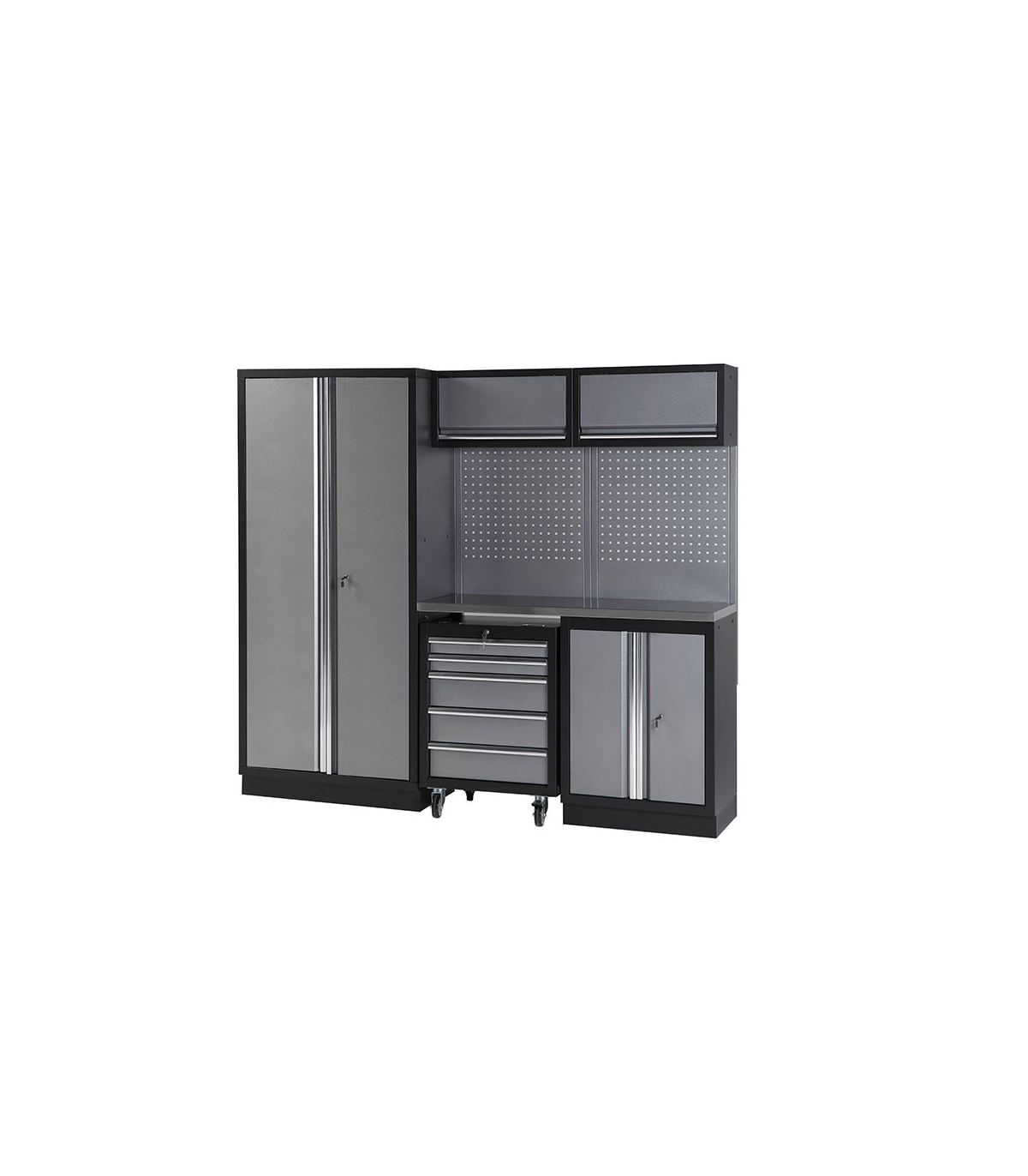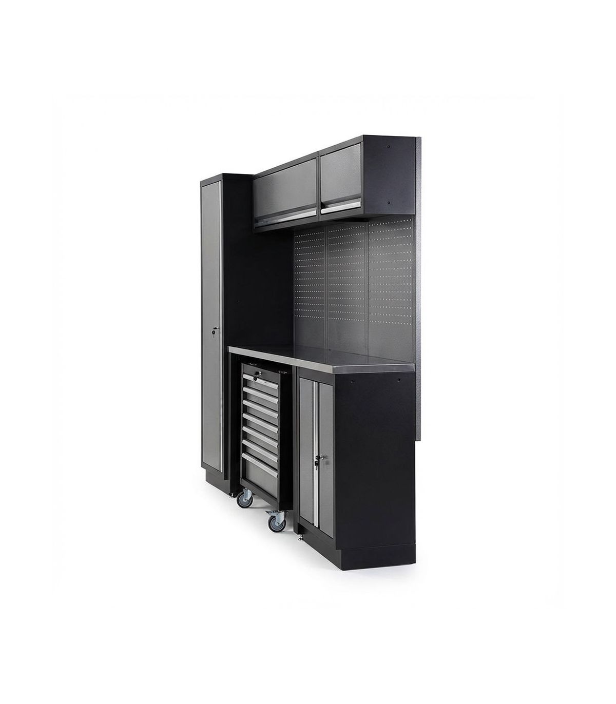 - Trio de Rangement Modulaire : Composition robuste de trois modules bas offrant une capacité de stockage optimisée pour l'outillage.