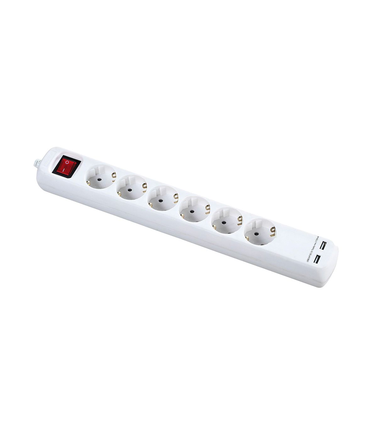 Multiprise pouvant accueillir 3, 5 ou 6 prises Schuko et 2 connexions USB pour recharger des appareils électriques, des téléphones portables, des tablettes, des batteries, etc.Sécurité totale grâce à la protection enfant des prises Schuko.Câble de 1,40 mètre avec 3 fils de 1,5 mm, en cuivre, d'une capacité de 3 680 W, tension 230 V et 16 A.Interrupteur d'alimentation avec dispositif d'avertissement optique, favorisant la sécurité.Cette multiprise est conforme aux normes de sécurité CE et GS. Conforme également à la norme sur la poussière et l’humidité IP20.
