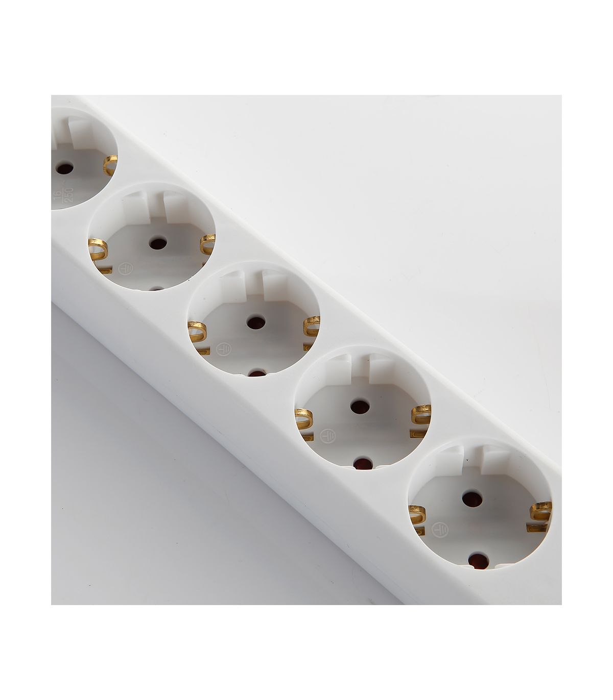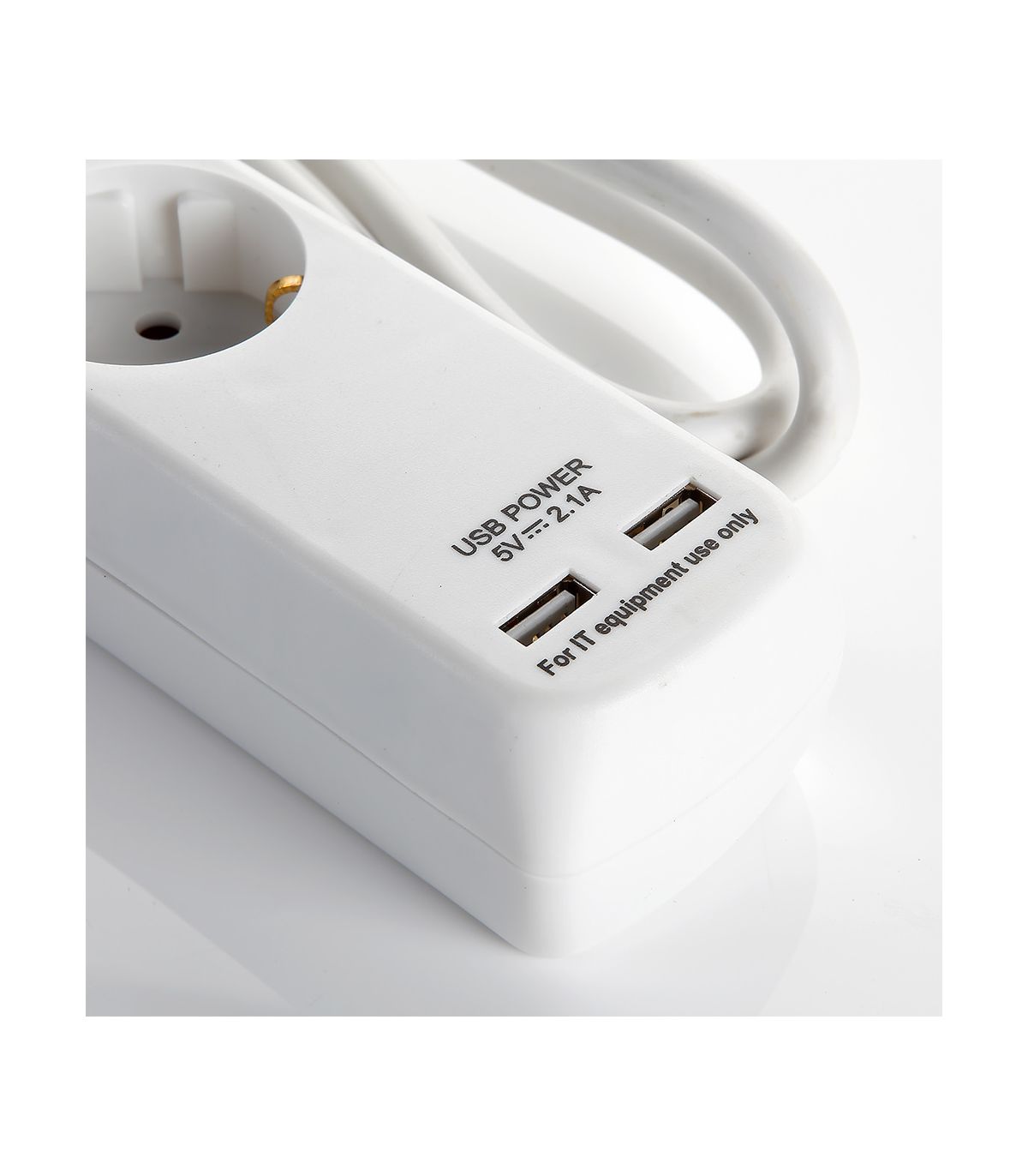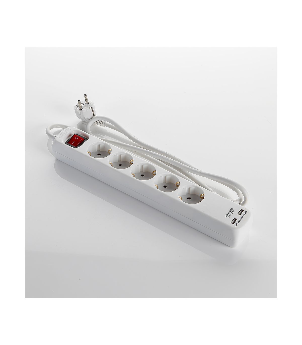 Multiprise de 3, 5 ou 6 prises Schuko avec protection enfant. Plus 2 ports USB. Elle est équipée d'un interrupteur d'alimentation avec un témoin de passage de courant. Connectée à un câble 1,5 fils de 5 mm en cuivre (3x1,3 mm), câble H05VV-F d’une intensité maximale de 16 A 230 V pour un maximum de 3 680 W. La longueur du câble est de 1,40 m. Cette multiprise est conforme aux normes de sécurité électrique CE et GS. Conforme aux normes d'étanchéité IP20 (contre la poussière et l'humidité).