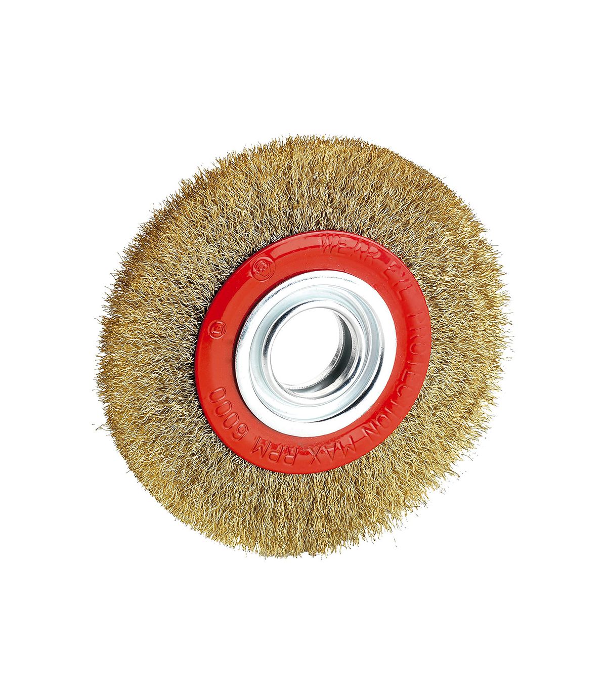 Brosse métallique circulaire pour les machines à meuler, adaptée à l'élimination de tous les types de rouille, de peinture et de bavures.Parfaite pour nettoyer la calamine des pièces forgées et moulées.Fil de qualité en laiton pour un nettoyage plus efficace.Chaque brosse est fournie avec différents adaptateurs pour le montage sur des arbres lisses : Ø 12, 16, 20, 22, 25 et 32 mm.Il s’agit de l'outil parfait pour les travaux professionnels qui nécessitent un outil efficace.
