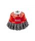Brosse boisseau en fil métallique tressé, idéale pour l'élimination de la rouille, de la peinture et des adhérences en général. Spécialement conçue pour être utilisée sur des machines portables (meuleuses d'angle), électriques ou pneumatiques. Construction basée sur un fil toronné gris de 0,50 mm de diamètre Convient pour le rabotage de grandes surfaces où un enlèvement de matière important est nécessaire. Fixation au moyen d'une douille filetée M14 Idéale pour la construction mécanique, la construction navale, la chaudronnerie et le travail du béton.
