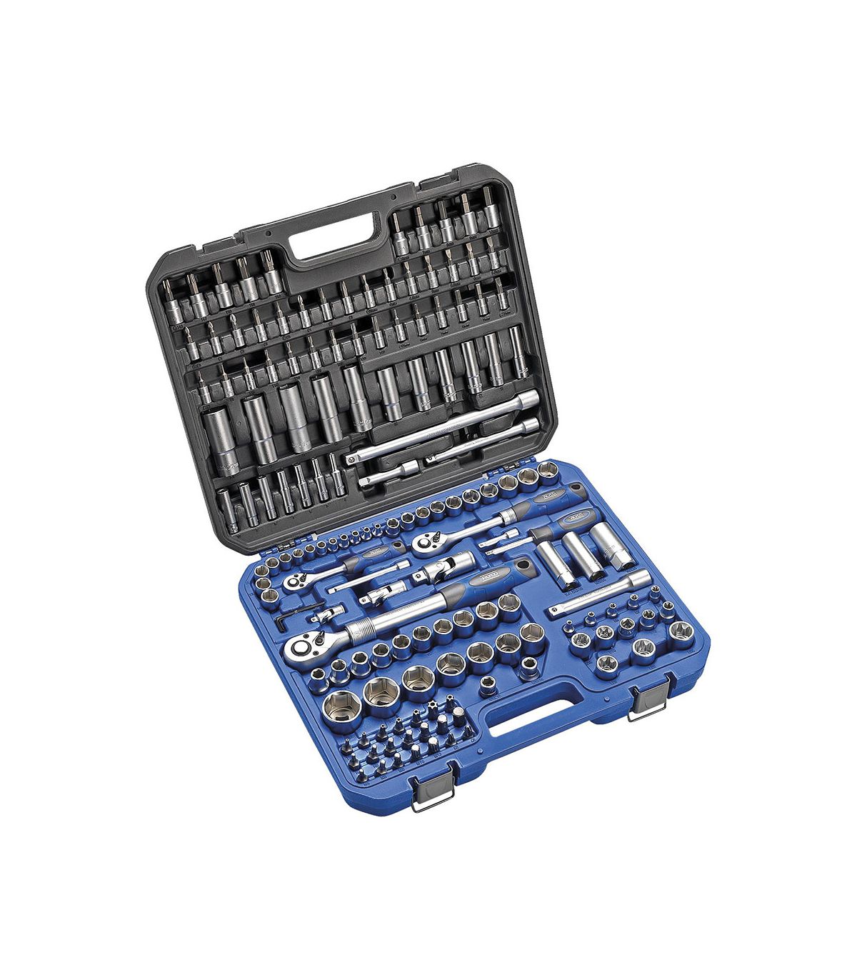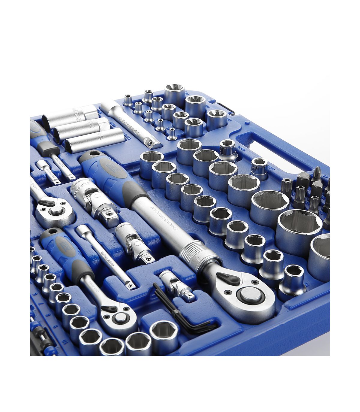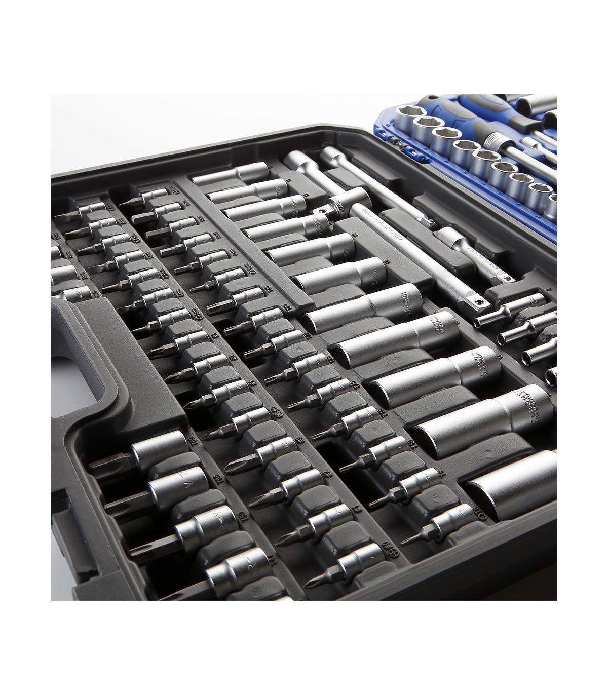 Avec 155 éléments, ce kit ne laisse place à aucun imprévu. Il inclut une gamme exhaustive de douilles courtes et longues, des embouts de vissage pour tous les profils (Torx, Hex, PH, PZ) et une multitude d'accessoires (rallonges, cardans, poignées coulissantes). Le coffret de transport en polyéthylène haute densité est conçu pour absorber les chocs et maintenir chaque pièce fermement en place. L'identification claire des tailles dans la mallette permet un contrôle visuel instantané, garantissant qu'aucun outil n'est oublié sur le chantier. En choisissant Alyco, vous optez pour la fiabilité d'un outillage de grade industriel qui valorise votre expertise technique.