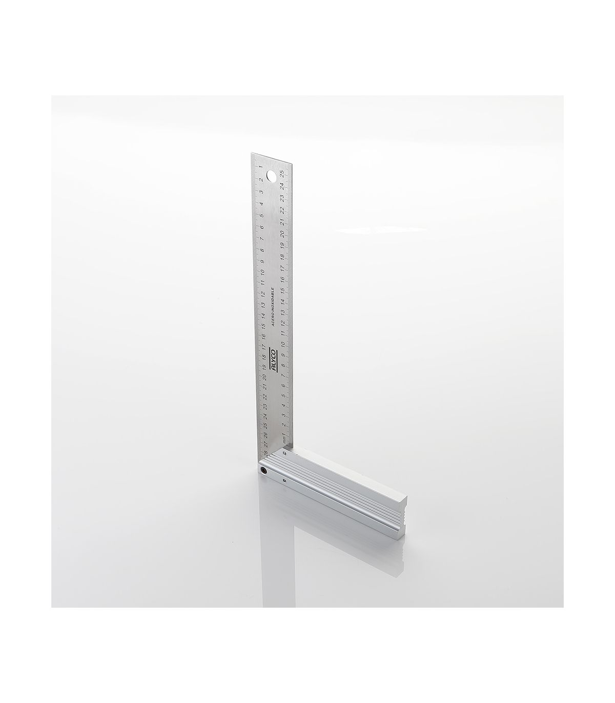 Lame en acier inoxydableManche en aluminium anodiséMarquage en mmMarquage des deux côtés de la lamejoint riveté entre la lame et le manche