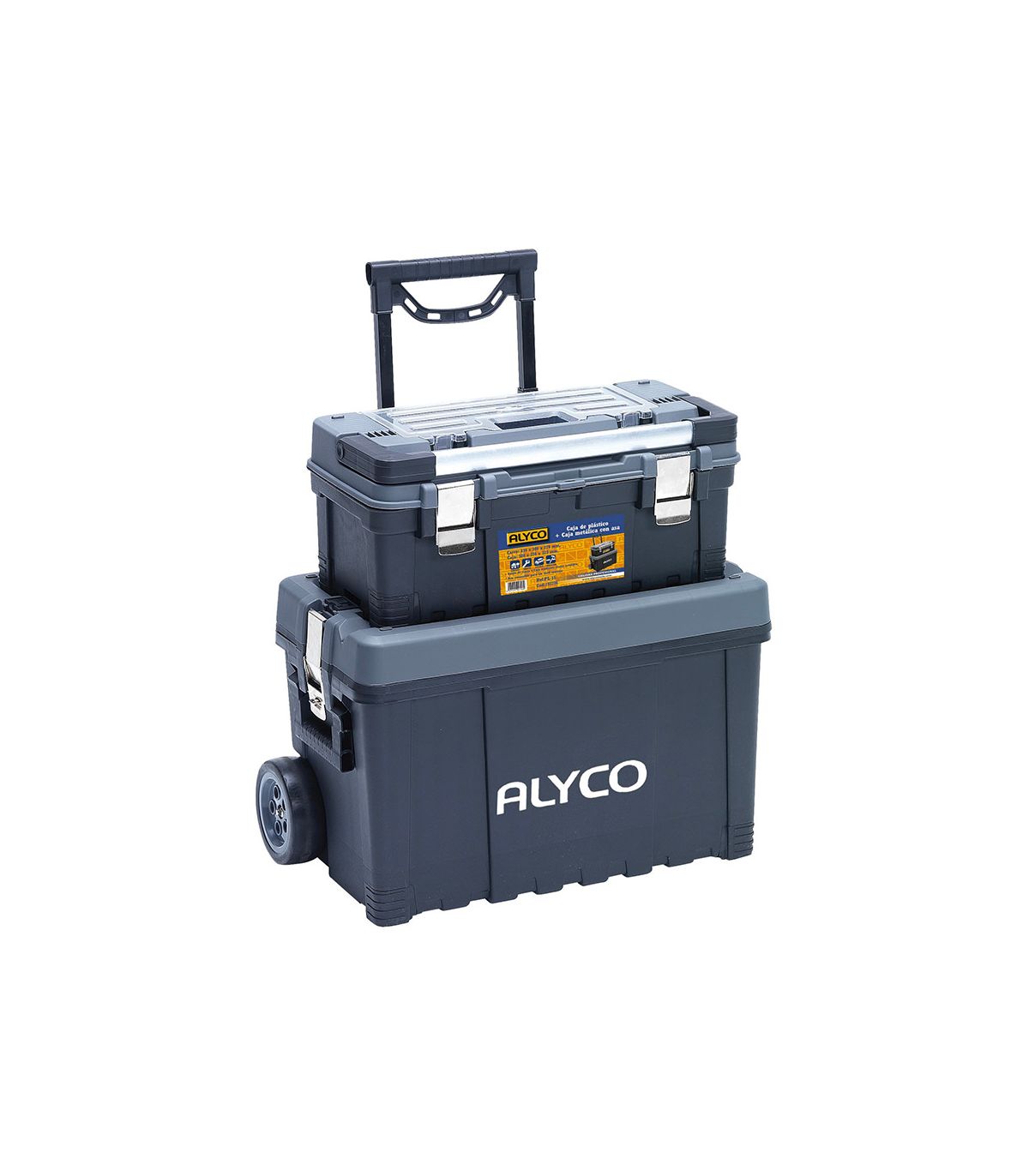 Chariot composé d'un coffre en plastique avec plateau intérieur (63x30x27 cm) et d'une boîte en plastique avec attaches métalliques amovibles (50x25x22 cm). Supporte une charge maximale de 20 kg. Avec 2 roues en caoutchouc renforcé et une poignée extensible. Le coffre inférieur comprend un plateau intérieur pour les consommables et pour couvrir le contenu inférieur. Il est doté de deux serrures métalliques pouvant accueillir des cadenas et de poignées latérales. La boîte supérieure est dotée d’un plateau intérieur amovible et d’une grande poignée en aluminium. Possède également deux serrures métalliques. Comprend un compartiment supérieur en plastique pour les consommables. Il peut être utilisé indépendamment ou dans le cadre d'un ensemble. Le coffre est équipé d'une poignée métallique extensible et repliable pour faciliter les déplacements. Chariot idéal pour le rangement des outils de bricolage dans les garages, à la campagne, etc. Également recommandé pour les installateurs, les monteurs, pour la maintenance d'entreprise, etc.