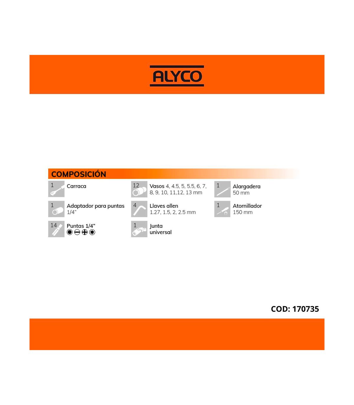 Set De Clés À Douilles Et Accessoires 1/4" 35 Pcs Alyco Orange Alyco 170735