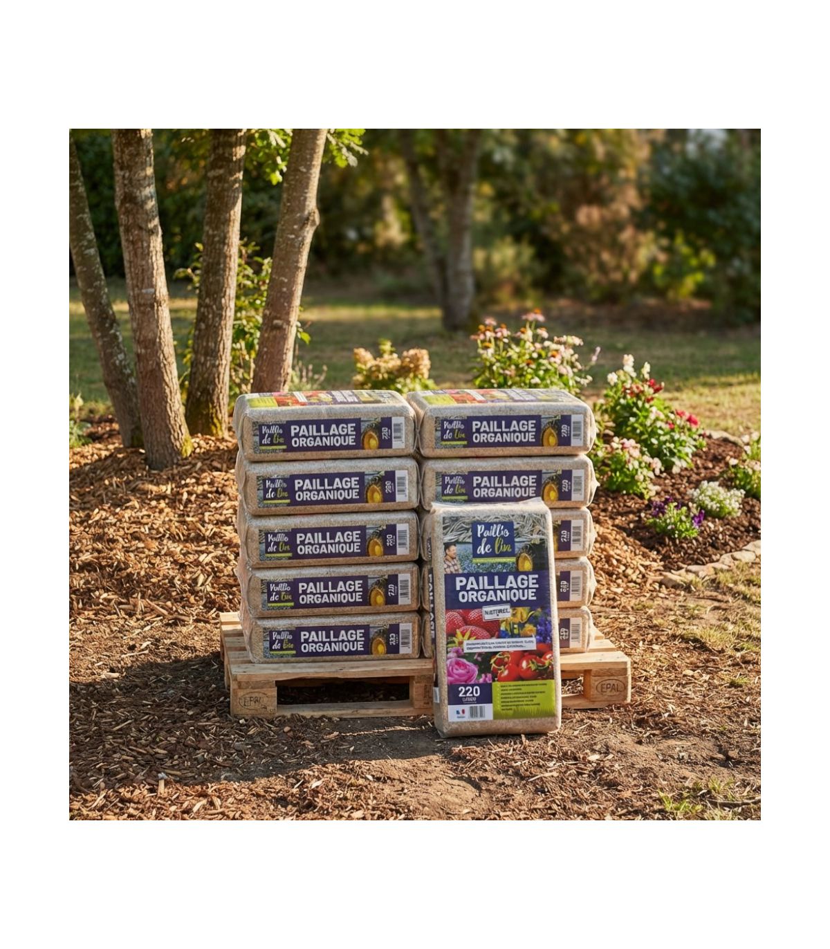 - Paillis de lin organique naturel idéal pour les jardins et espaces verts.