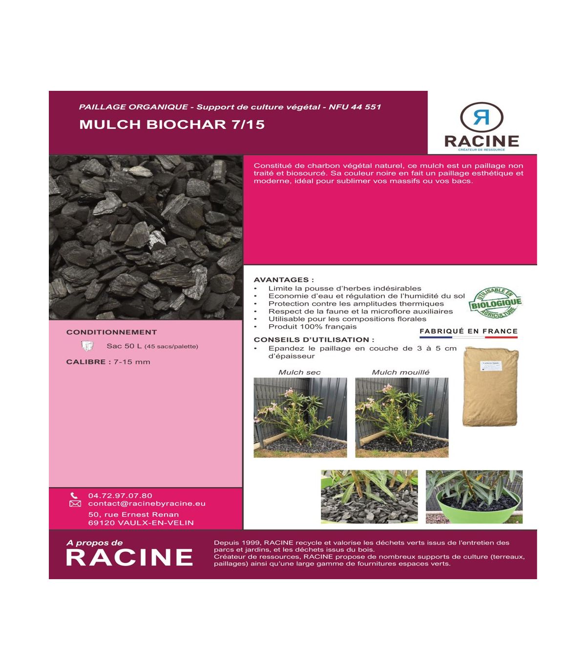 | Type de produit | Paillage organique |