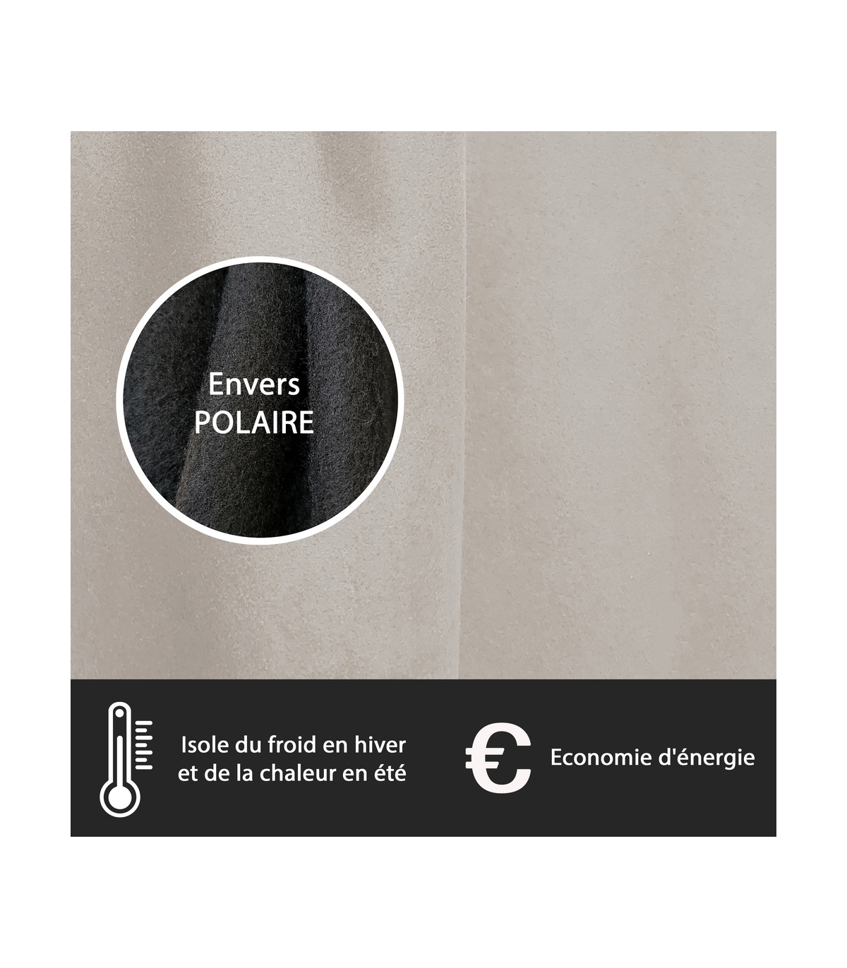 Rideau suédine Thermique doublé Polaire, Beige - 140x180cm Prêt a poser Atout Ciel