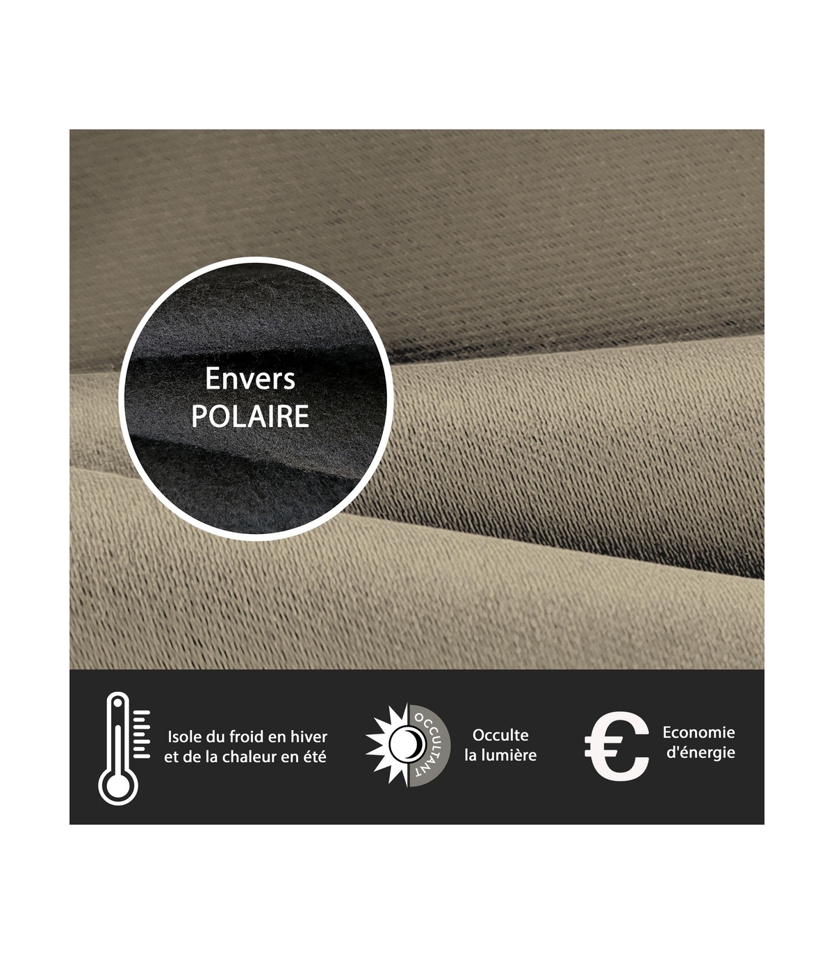 • Rideau occultant thermique couleur Taupe pour une ambiance moderne avec son tissu légèrement satiné