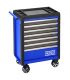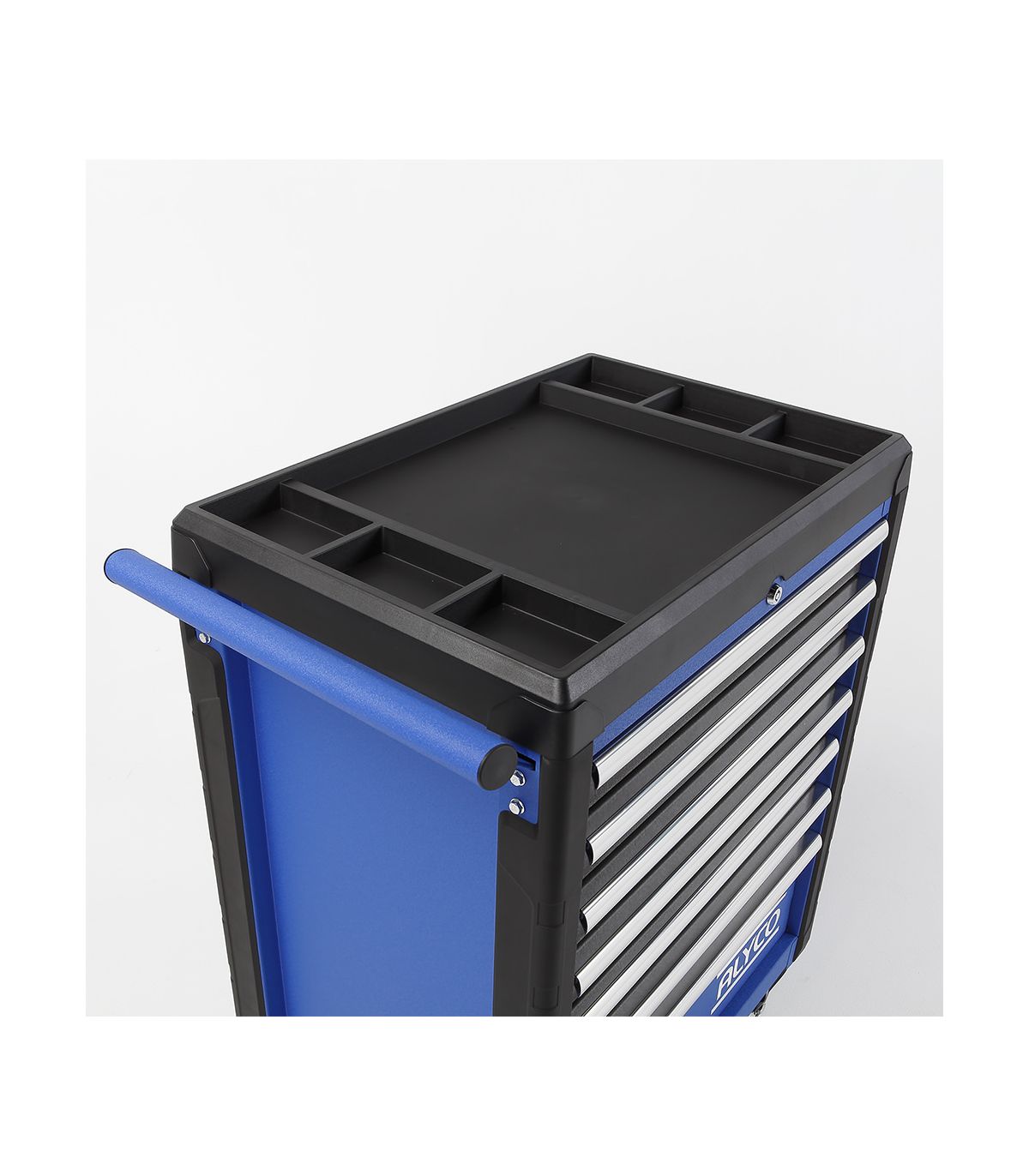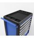 La supériorité technique de la référence 129725 repose sur la qualité de son châssis métallique renforcé en tôle d'acier de 0,8 mm. Ce cadre est conçu pour supporter des centaines de kilos d'outillage sans aucune déformation structurelle. Les 7 tiroirs sont équipés de glissières télescopiques à billes de haute précision. Cette technologie assure non seulement une ouverture et une fermeture silencieuses, mais garantit également un accès total au fond du tiroir, maximisant ainsi chaque centimètre carré de stockage disponible. Ce modèle se distingue par son plateau supérieur en plastique ABS de haute densité. Ce plateau n'est pas qu'une surface plane ; il intègre des compartiments moulés qui permettent de classer immédiatement la visserie et les petites pièces lors du démontage d'un moteur ou d'une machine, évitant ainsi les pertes de temps et de composants.