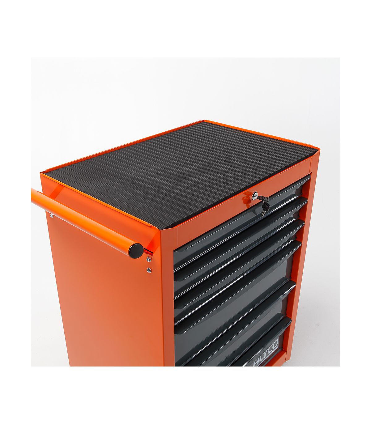 La mobilité est assurée par des roues de grade industriel, conçues pour rouler sur les sols d'atelier parfois inégaux ou huileux. Les deux roues pivotantes avec freins garantissent une immobilisation parfaite de la servante pendant le travail. La sécurité de votre outillage est assurée par un système de verrouillage centralisé par clé. La finition en peinture époxy orange Alyco offre une excellente résistance aux rayures, aux huiles et aux solvants, conservant l'aspect professionnel de votre équipement année après année. En choisissant Alyco Orange, vous investissez dans une solution de rangement mobile fiable qui valorise votre expertise technique.
