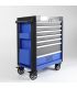 Le contenant, une servante renforcée à 7 tiroirs, est une pièce de robustesse industrielle. Son châssis est conçu pour encaisser les chocs inévitables sur les chantiers ou dans les allées d'usine. Les glissières télescopiques à roulements à billes assurent une fluidité de mouvement constante, même sous forte charge. La mobilité est confiée à des roues de grand diamètre capables de supporter le poids massif de l'ensemble (chariot + outils) tout en offrant une maniabilité précise. Le verrouillage centralisé sécurise votre investissement. Alyco valorise votre expertise par une solution complète alliant force, ordre et efficacité.