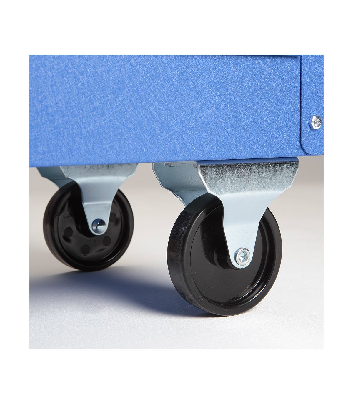 Chariot d'atelier en métal renforcé avec 3 plateaux de support pour les outils, avec structure renforcée en tôle d'acier avec traitement anticorrosion, avec protection par peinture époxy, séchée au four, ce qui lui confère une très grande robustesse et capacité de charge. Il dispose de trois plateaux pour le rangement et le support des outils. Comprend un caoutchouc protecteur sur les surfaces, empêchant toute déformation due aux chocs, aux rayures et à la corrosion. Poignée métallique pour faciliter les déplacements. Mobilité facile avec 4 roues de diamètre Ø 4 "x1" (10x2,5 cm), deux roues pivotantes et deux roues fixes, ces dernières disposant d’un frein de blocage. Surfaces de chargement : environ 70 x 36 x 9,5 cm Charge maximale de 100 kg. Livré démonté, avec instructions de montage. Il dispose d'une multitude d'accessoires magnétiques qui peuvent être fixés au chariot et qui augmentent son utilité (plaques, crochets). De multiples accessoires sont également disponibles en cas de casse ou de perte (roues, serrures, clés).