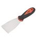 Spatule avec lame en acier au carbone. Empêche la rouille.Lame rectifiée pour fléchir la pointe. Permet d'exercer une plus grande force d'appui angulaire et de décoller plus de peinture ou de saleté.Corps du manche en plastique très résistant.Manche en plastique composite pour une meilleure prise en main et une meilleure application de l'effort.Spatule pour une multitude d'utilisations, telles que gratter des surfaces, appliquer du mastic, etc.