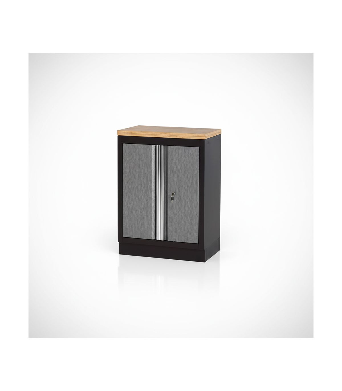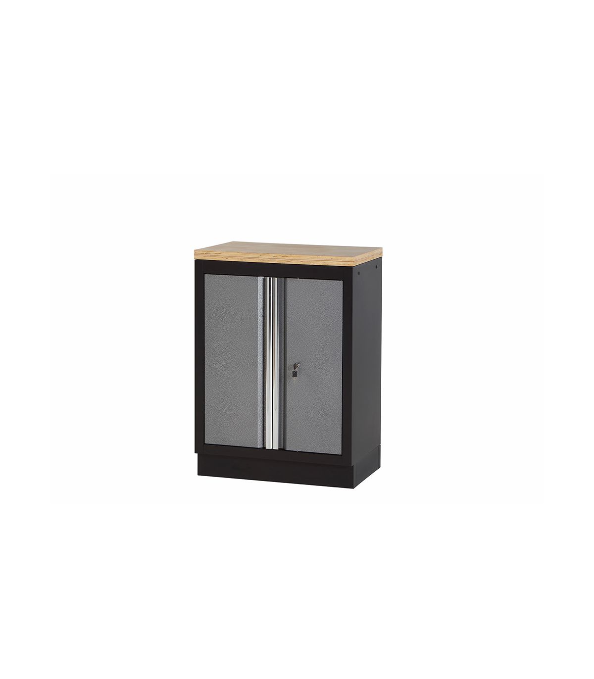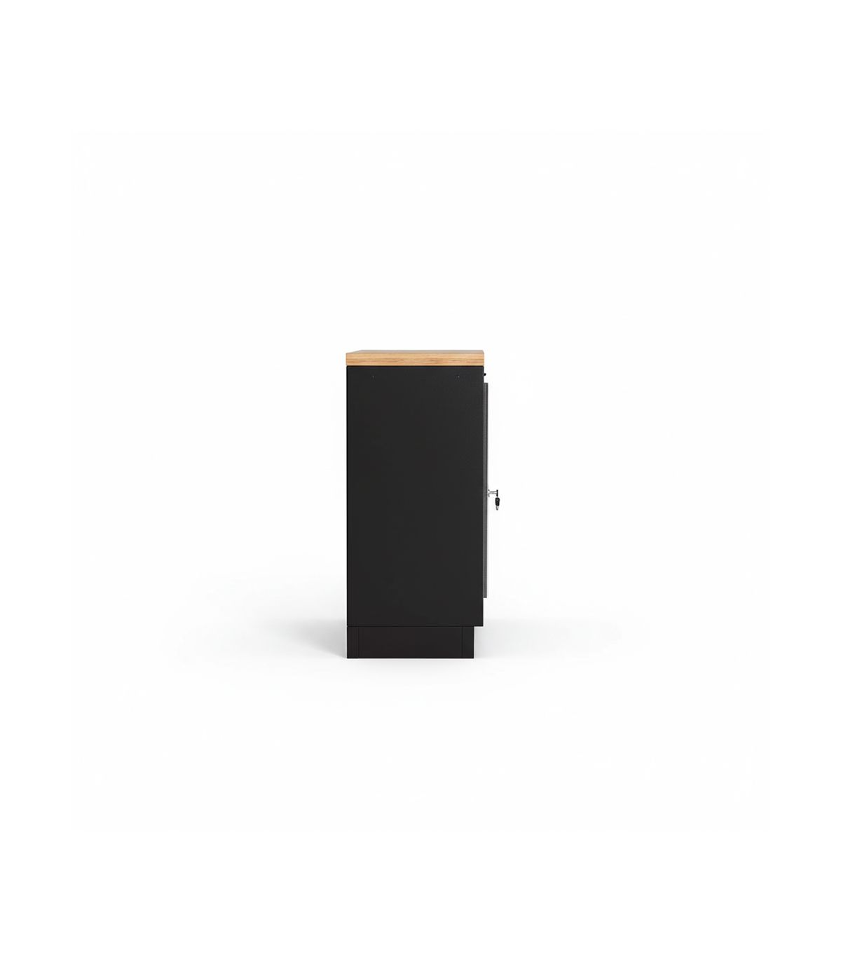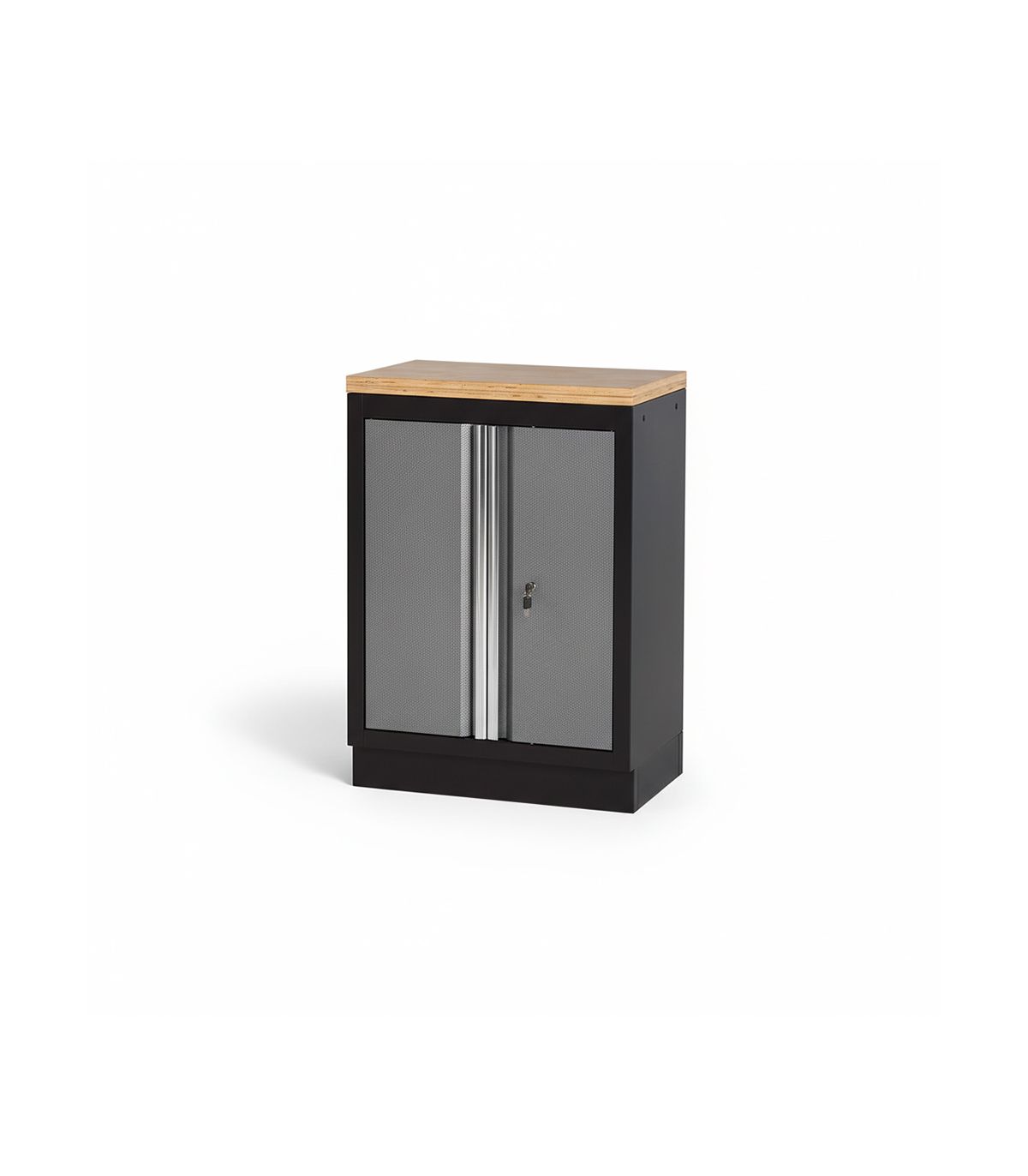 La supériorité technique de la référence 129874 repose sur sa structure en tôle d'acier de haute qualité. Le plateau en bois massif est sélectionné pour sa capacité à absorber les vibrations et sa résistance naturelle à la compression. Il offre un confort de travail supérieur lors d'opérations de frappe légère par rapport à une surface métallique. À l'intérieur, l'armoire dispose d'un espace dégagé, modulable grâce à une étagère robuste, permettant d'organiser le stockage selon vos besoins réels. Les charnières sont conçues pour un usage intensif, assurant un alignement parfait des portes sur le long terme.