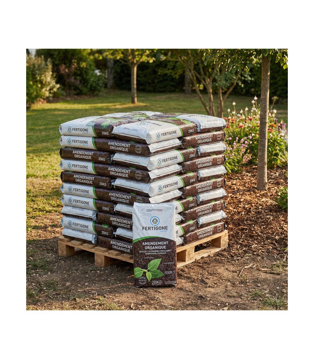Investir dans le compost bio 960kg RACINE, c'est choisir un produit biosourcé qui participe activement à la protection de l'environnement. Sa composition à base de fermentescibles alimentaires et de fumier de cheval composté en fait l'un des fertilisants les plus complets du marché pour restaurer le cycle naturel de la fertilité. C'est une solution naturelle et écologique qui permet de limiter drastiquement l'usage d'intrants chimiques polluants. Sa longévité d'action structurelle est remarquable, offrant un bénéfice palpable sur la santé de votre sol pendant plusieurs saisons. Que ce soit pour une remise en culture maraîchère ou l'entretien d'un parc de prestige, le compost Fertigone reste le choix de la robustesse et de l'efficacité organique.