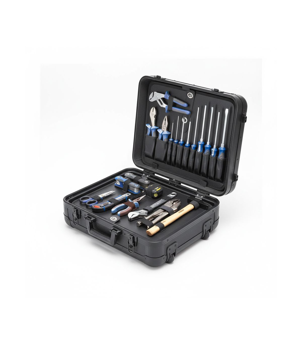 L'organisation interne a été pensée pour l'efficacité sur le terrain. Les panneaux de maintien évitent que les outils ne se mélangent pendant le transport, et chaque pièce a son emplacement dédié pour un inventaire visuel instantané. La mallette aluminium, avec ses charnières renforcées et ses fermoirs sécurisés, résiste aux chocs inévitables dans les véhicules ateliers. En choisissant Alyco, vous investissez dans un matériel d'élite qui assure une pérennité totale à votre outillage mobile et garantit une organisation irréprochable sur tous vos chantiers.