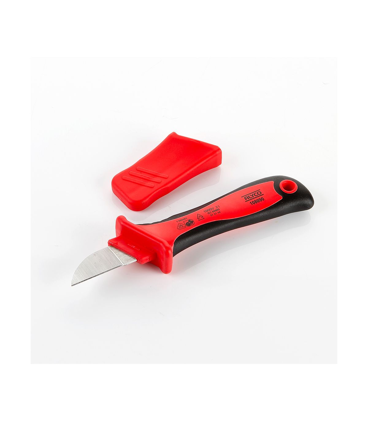 Couteau d'électricien avec lame en acier chrome vanadium et manche isolé selon la norme VDE EN60900. Le design est doté d’un arrêt pratique pour une prise sûre Fourni avec un bouchon en plastique pour le transport et le stockage.