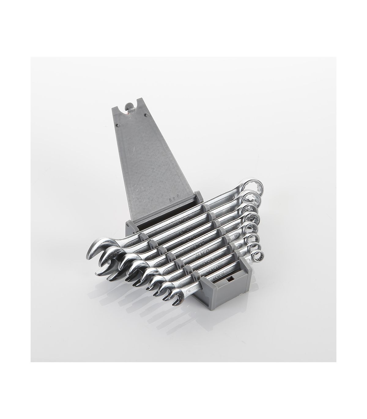 Set de 8 clés à molette en acier au chrome vanadium dans un support en plastique. Clé à deux mâchoires plate/en étoile aux bords arrondis, fabriquée en acier chrome vanadium, forgée en une seule pièce, durcie par traitement thermique et traitée au chrome sur la surface pour éviter l'oxydation. Les procédés de fabrication rendent cette clé conforme à la norme DIN 3113, le traitement thermique et le chromage de la surface lui confèrent une longue durée de vie. Apparence : têtes polies et satiné mat. Mâchoire chanfreinée et étoiles à bords arrondis pour un emboîtement facile de l'écrou. Inclinaison de 15° au niveau des mâchoires en étoile pour un serrage intensif. Angle de 15° sur les mâchoires ouvertes pour accéder aux endroits difficiles. Dimensions : 8, 9, 10, 11, 13, 14, 17 et 19 mm. Le support en plastique permet de retrouver facilement les clés, de repérer toute éventuelle clé manquante et de bien fermer le set lors du transport ou du stockage. Avec système d’accroche. Outil de serrage idéal pour les travaux industriels, mécaniques, de maintenance, de plomberie, d’assemblage, etc.